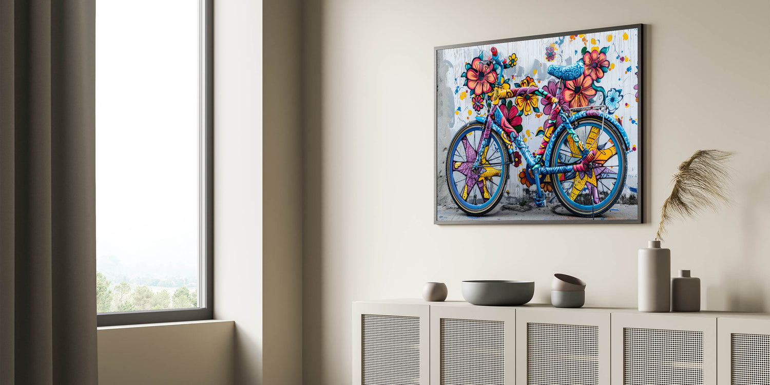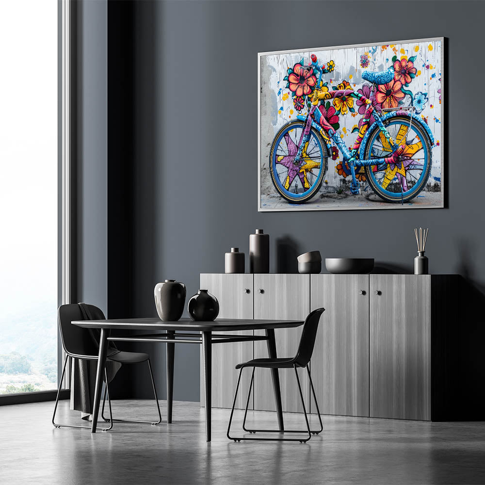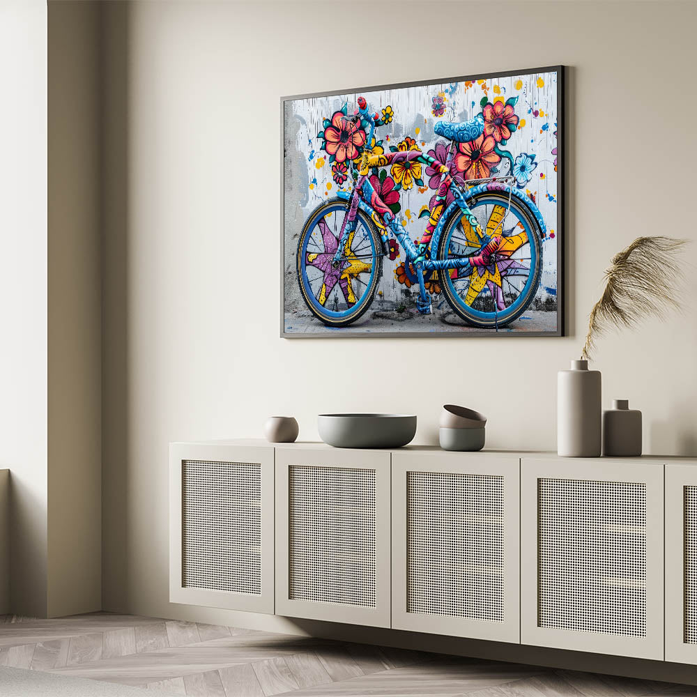 Vibrant Graffiti Bicycle Wall Art - Colorful Urban Cycling Print