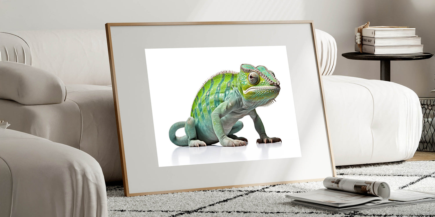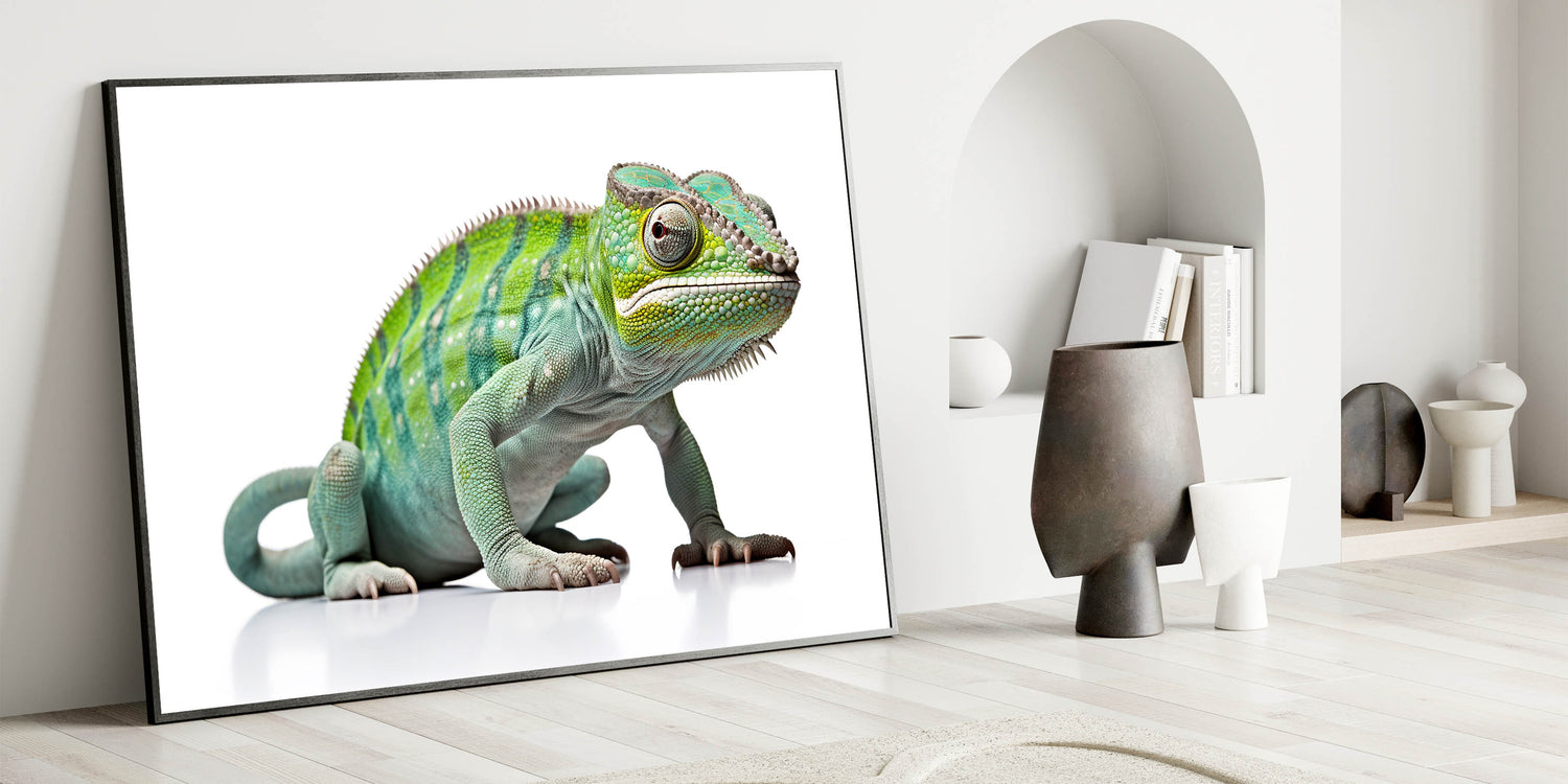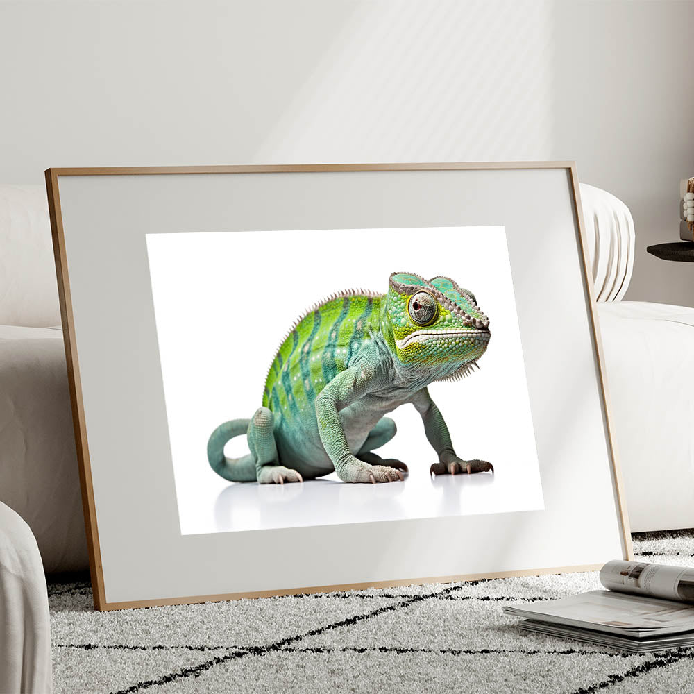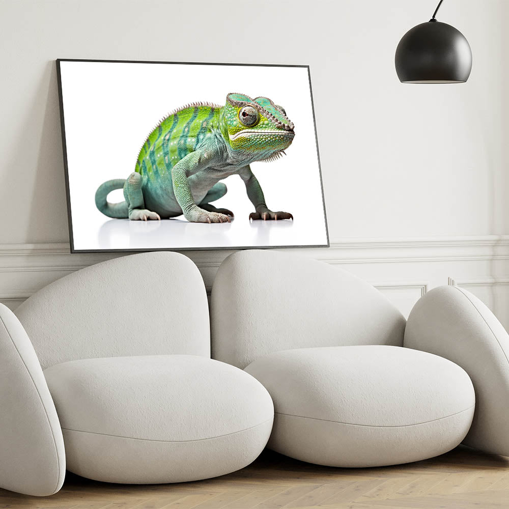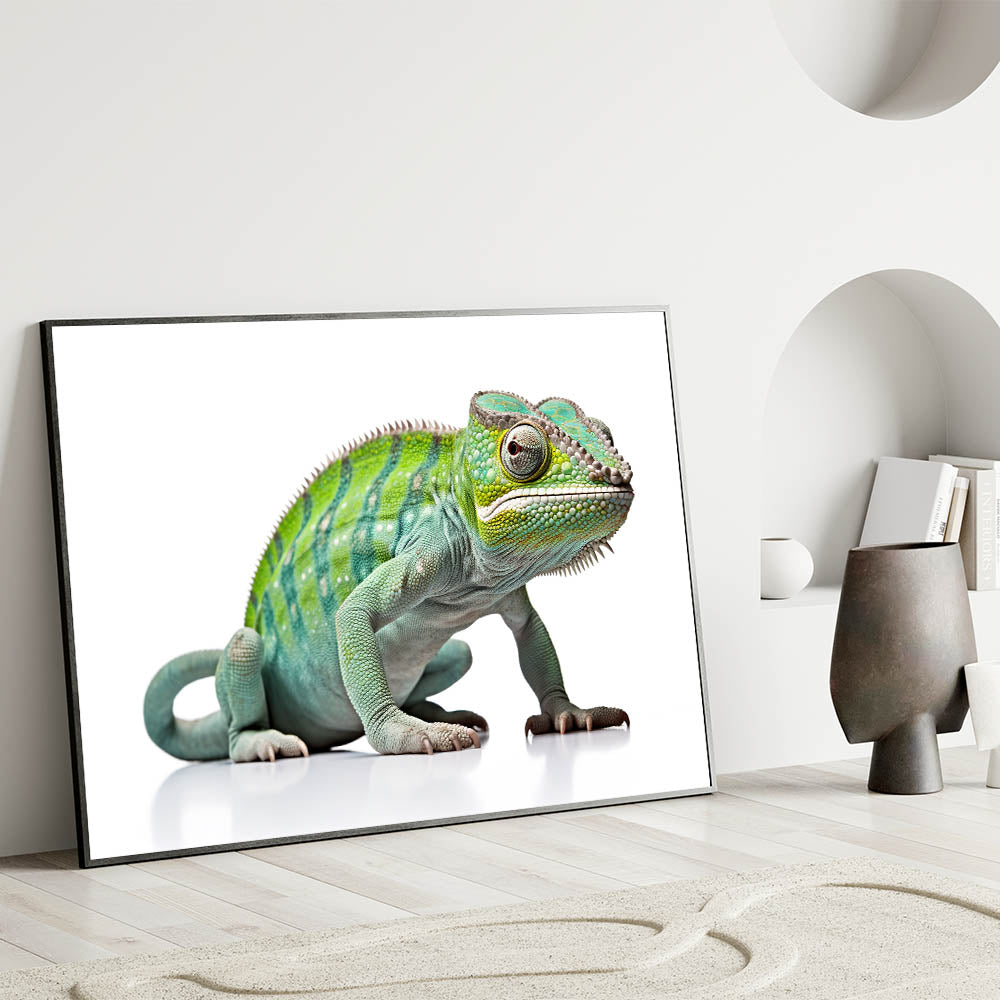 Transform your space with this stunning Lizard Wall Art, perfect for reptile enthusiasts and nature lovers alike. This vibrant and highly detailed artwork captures the mesmerizing beauty of a chameleon, showcasing its vivid green and blue hues. Ideal for adding a touch of wildlife-inspired elegance to your home or office, this piece is available in multiple formats, including Stretched Canvas, Framed Canvas, Acrylic Glass, Framed Acrylic Glass, Framed Print, Rolled Canvas, and Rolled Print.