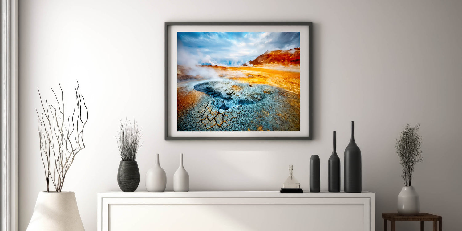 This hot spring wall art is not just a piece of decor; it's a window into the raw beauty of the natural world. Ideal for living rooms, offices, or any space where you want to create a focal point that draws the eye and ignites the imagination. Enhance your environment with this extraordinary landscape art print.