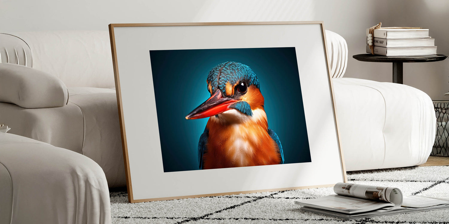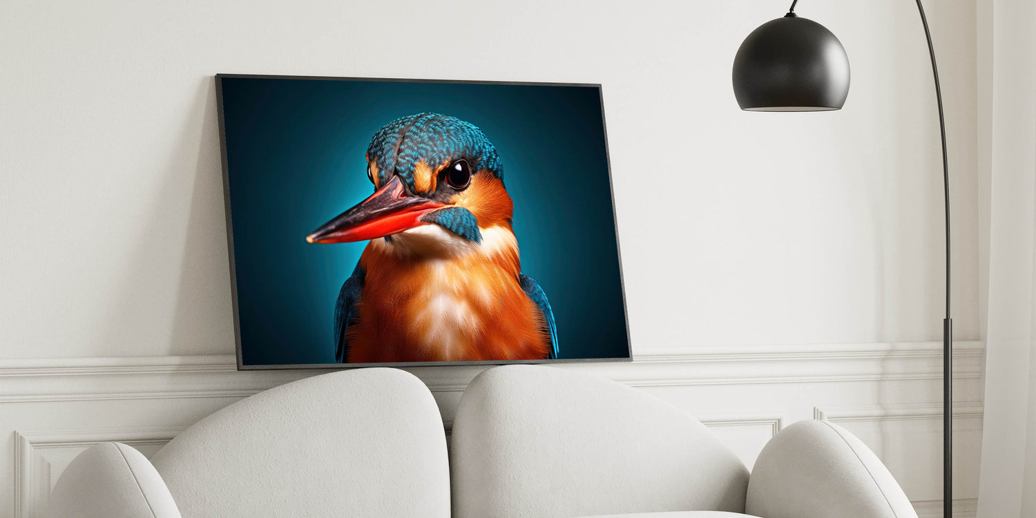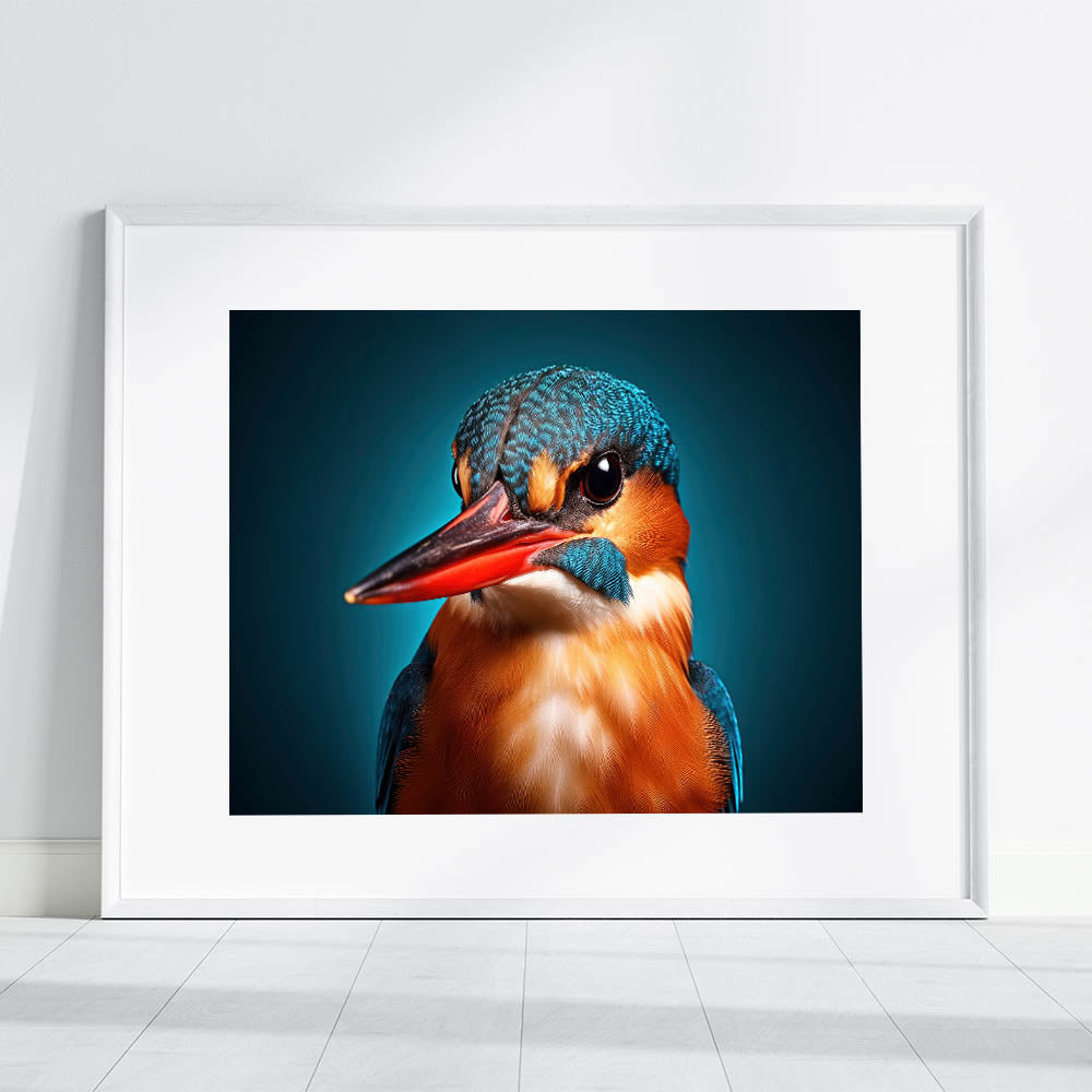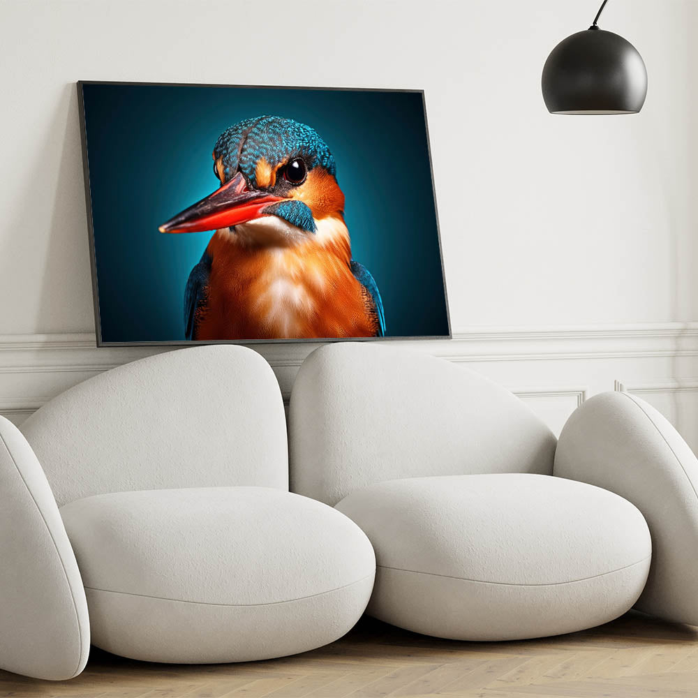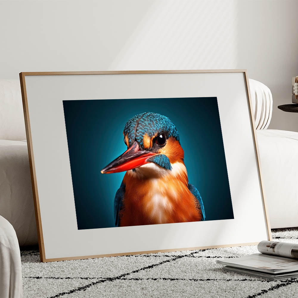 This Tropical Birds artwork is more than just a decor piece; it’s a celebration of nature’s vibrant beauty. Whether you choose canvas, acrylic, or a framed print, this kingfisher portrait will add a touch of elegance and color to your home decor.