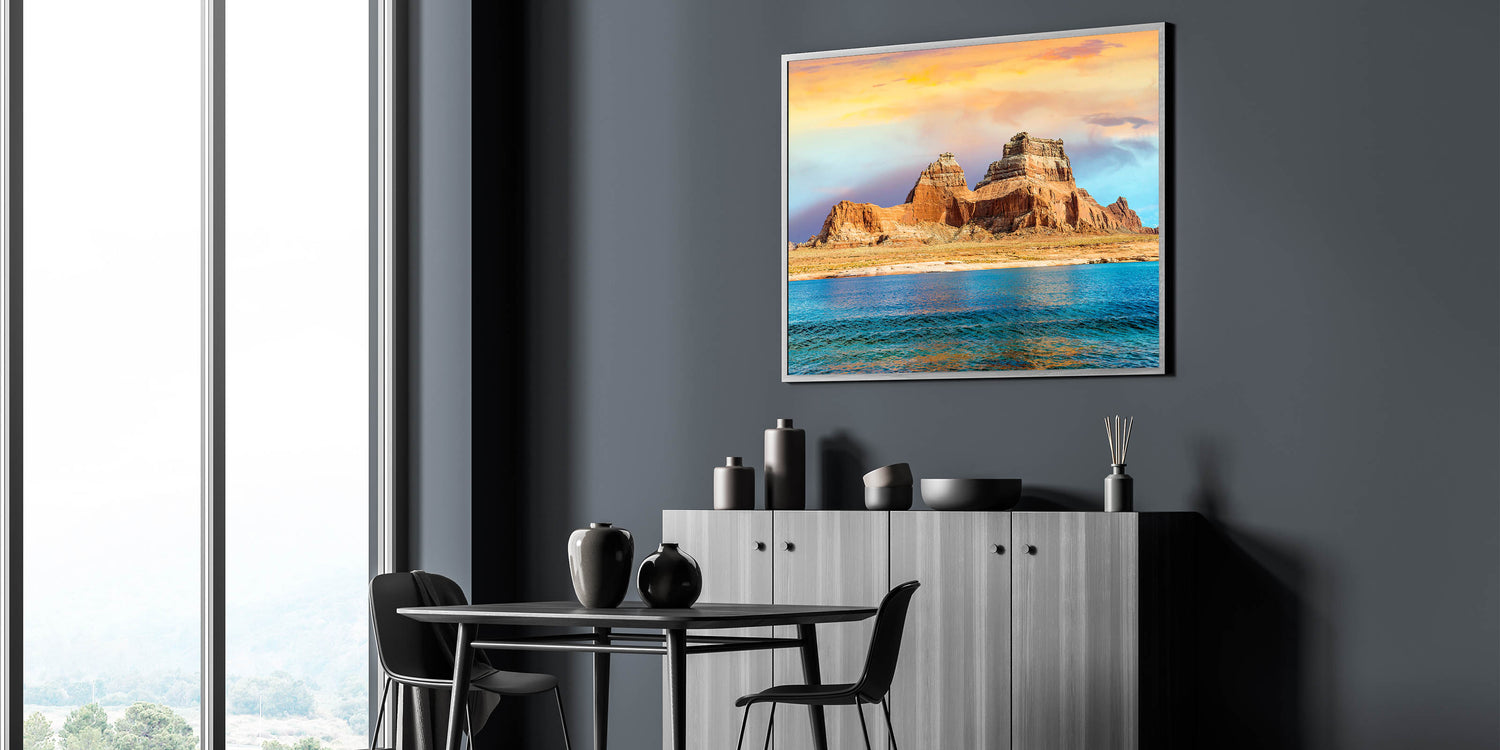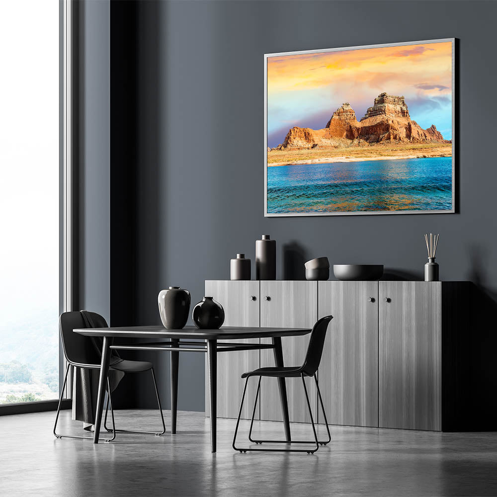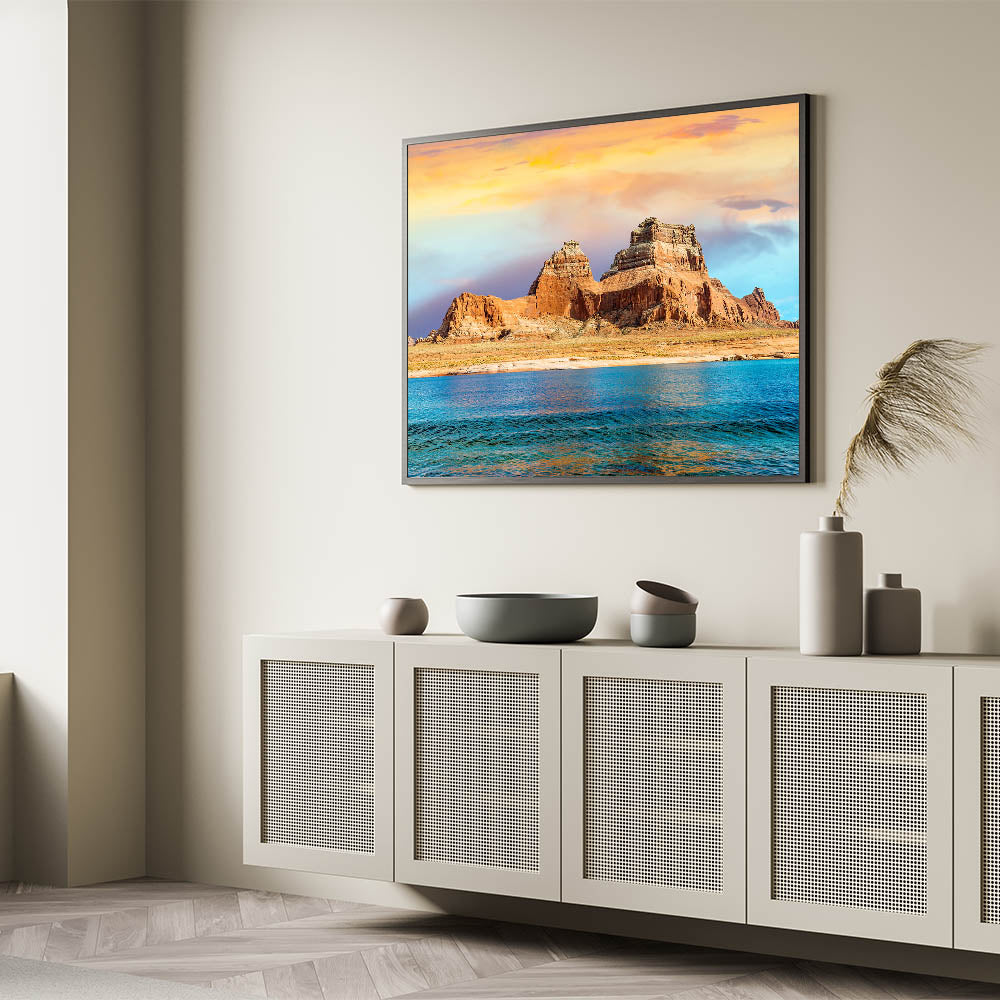 This artwork brings the majesty of Lake Powell's vibrant colors into your decor. Whether you want to inspire tranquility or make a bold statement, this piece is a timeless addition to any collection of Arizona lake art prints.