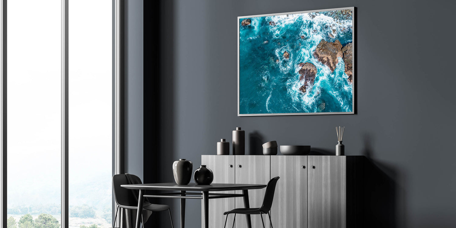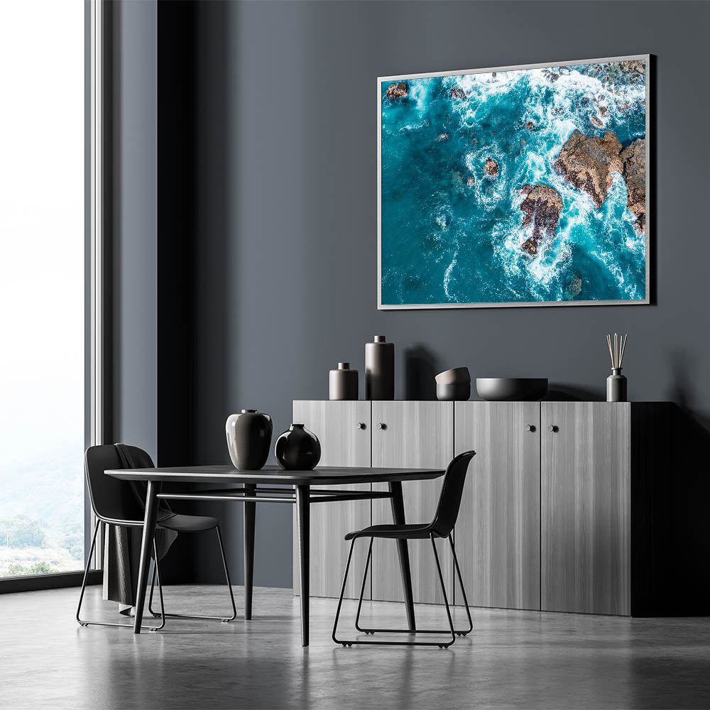 Bring the dynamic energy of the Pacific Ocean into your home with this stunning wall art capturing the vibrant waves of Big Sur. The mesmerizing blue waters crashing against the rocky coastline create a sense of movement and serenity, offering a perfect balance between nature’s power and tranquility. Ideal for coastal art lovers, this artwork adds a refreshing and captivating view of California’s famous coastline to any space.