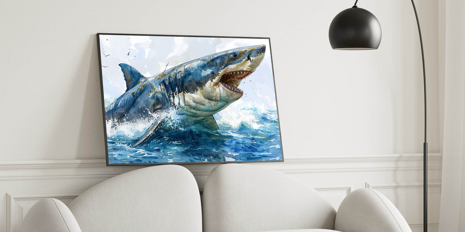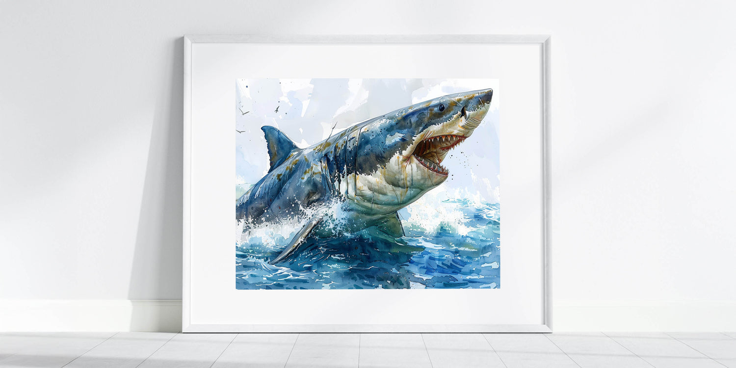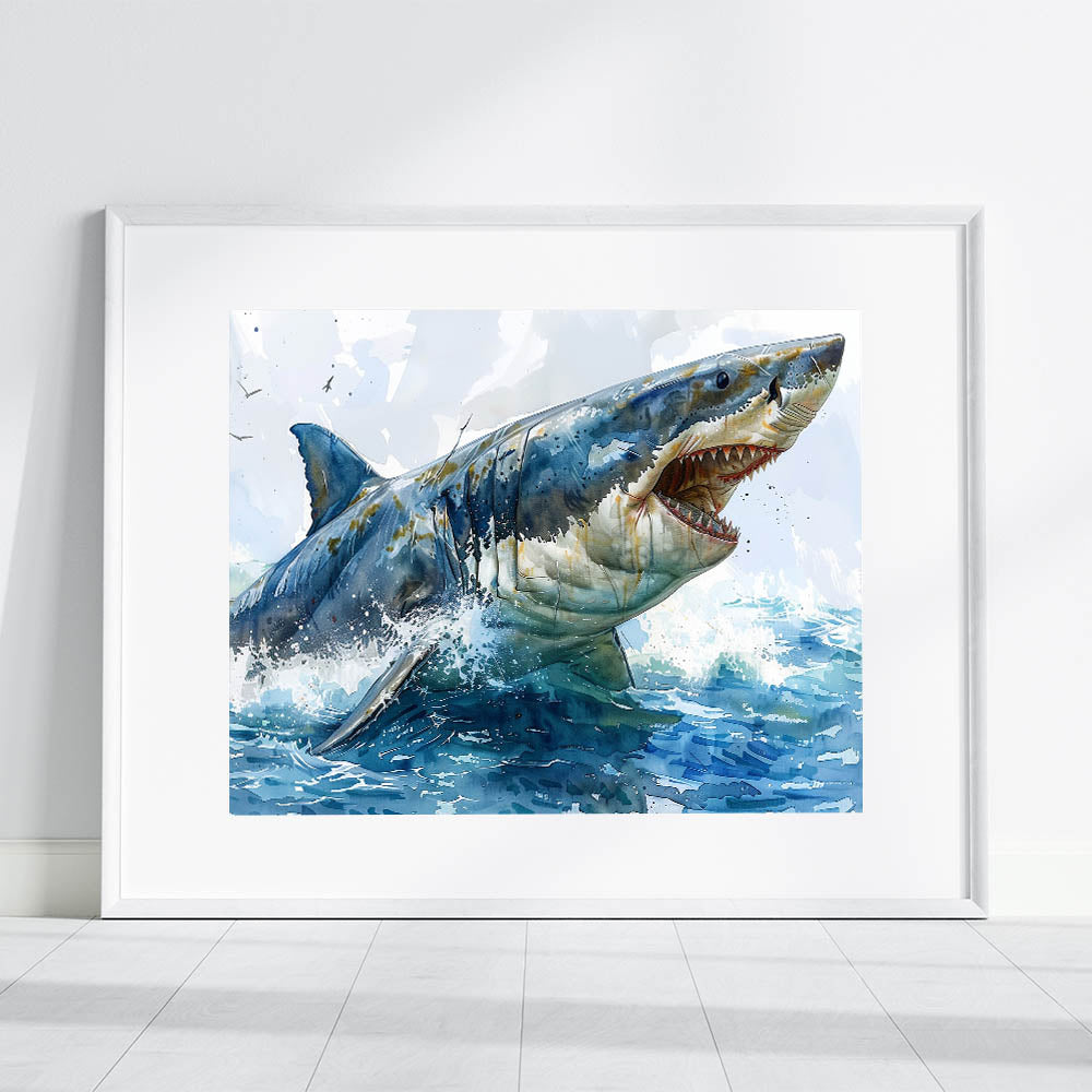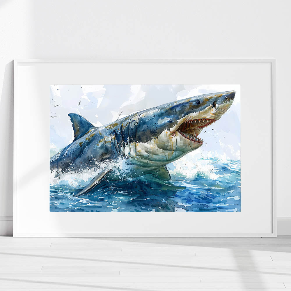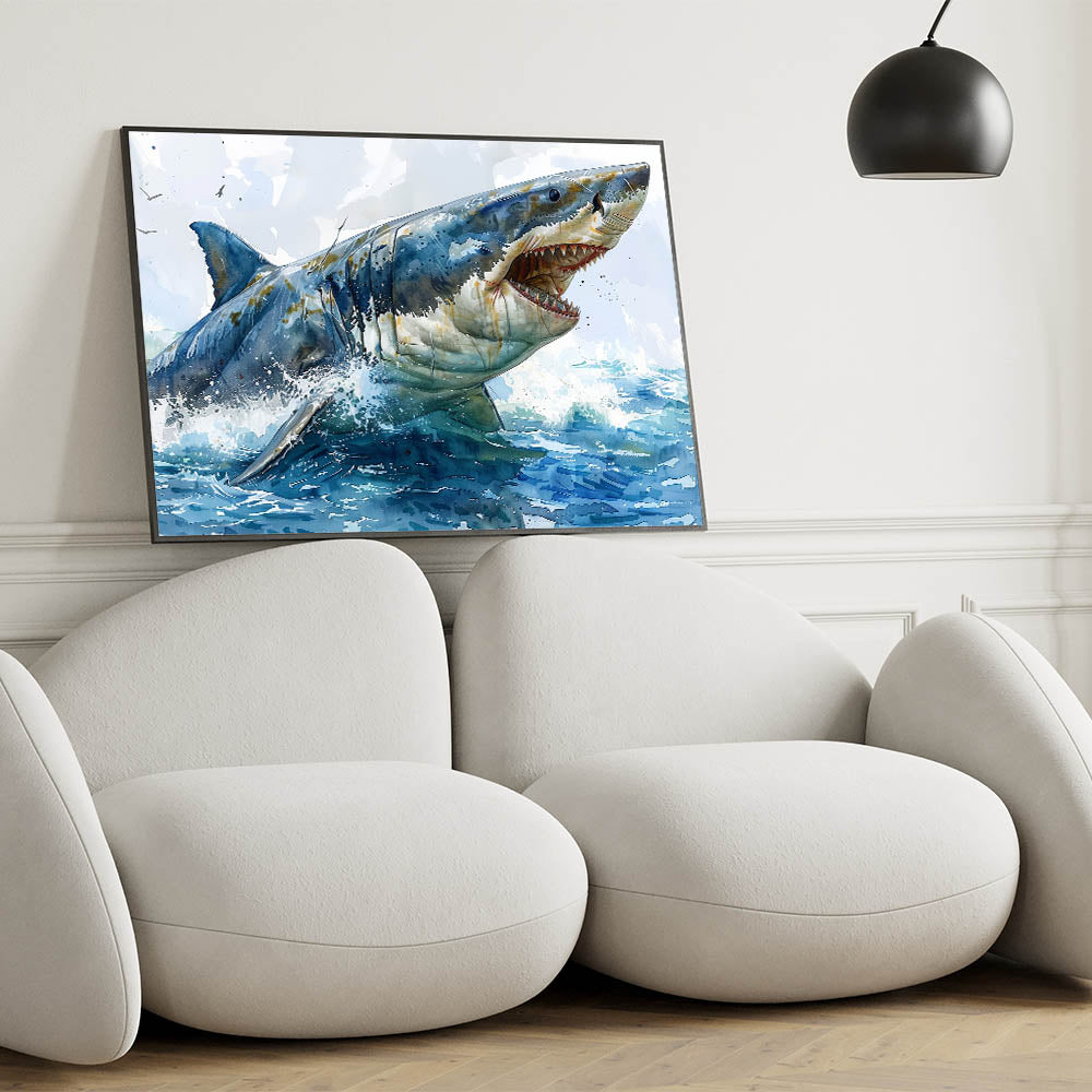 Dive into the vivid colors and dynamic movement of the ocean with this stunning Vibrant Shark Wall Art. This piece captures the sheer power and energy of a shark in action, rendered in bold, eye-catching hues that bring the scene to life. Perfect for marine life enthusiasts and those looking to add a splash of color to their space, this artwork is sure to be a conversation starter.