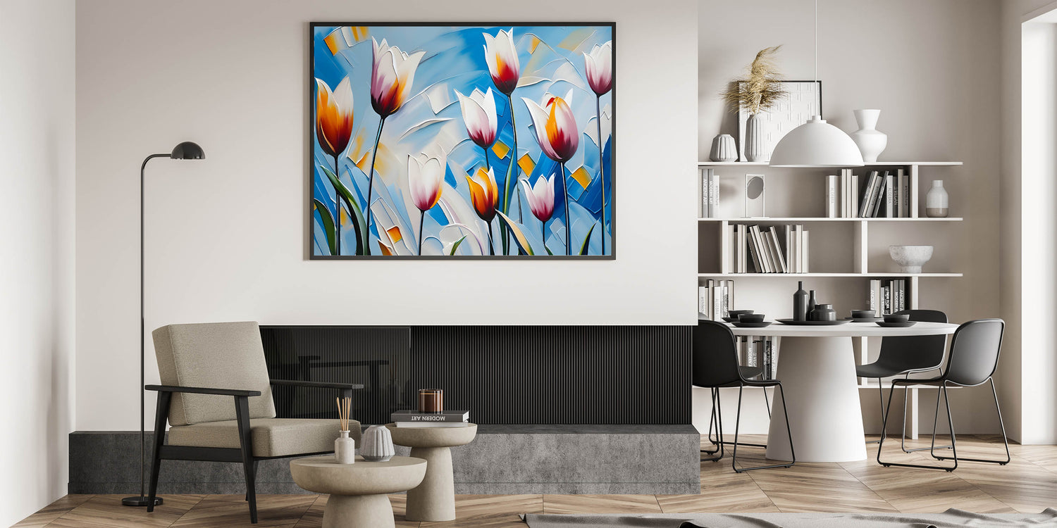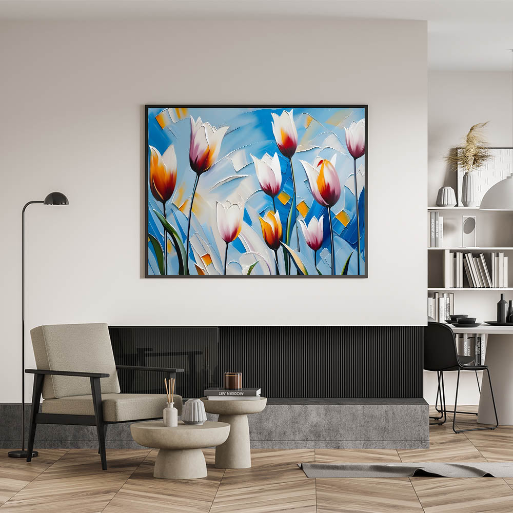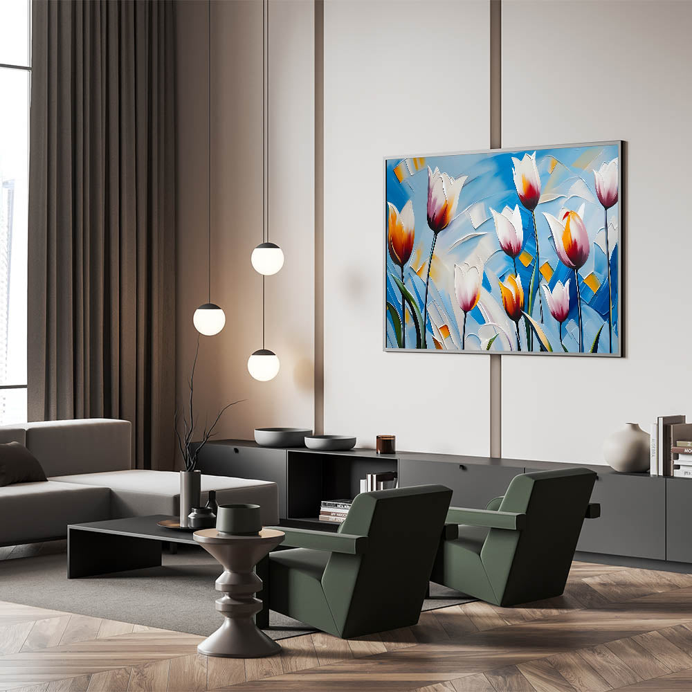 - Striking tulip artwork with vibrant colors for modern home décor
