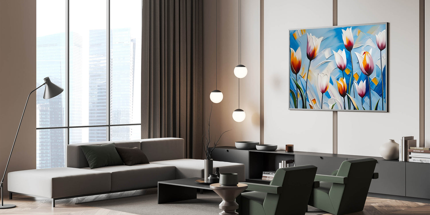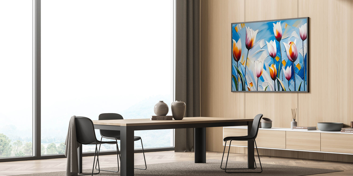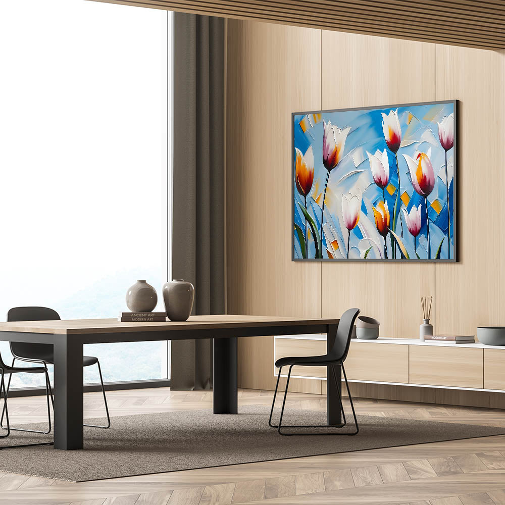- Striking tulip artwork with vibrant colors for modern home décor