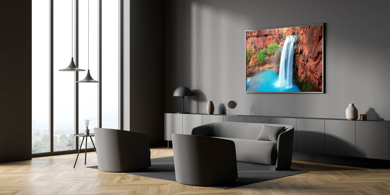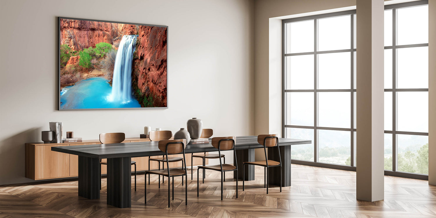- High-quality waterfall canvas available in various formats, including stretched and framed canvas, acrylic glass, and rolled prints.