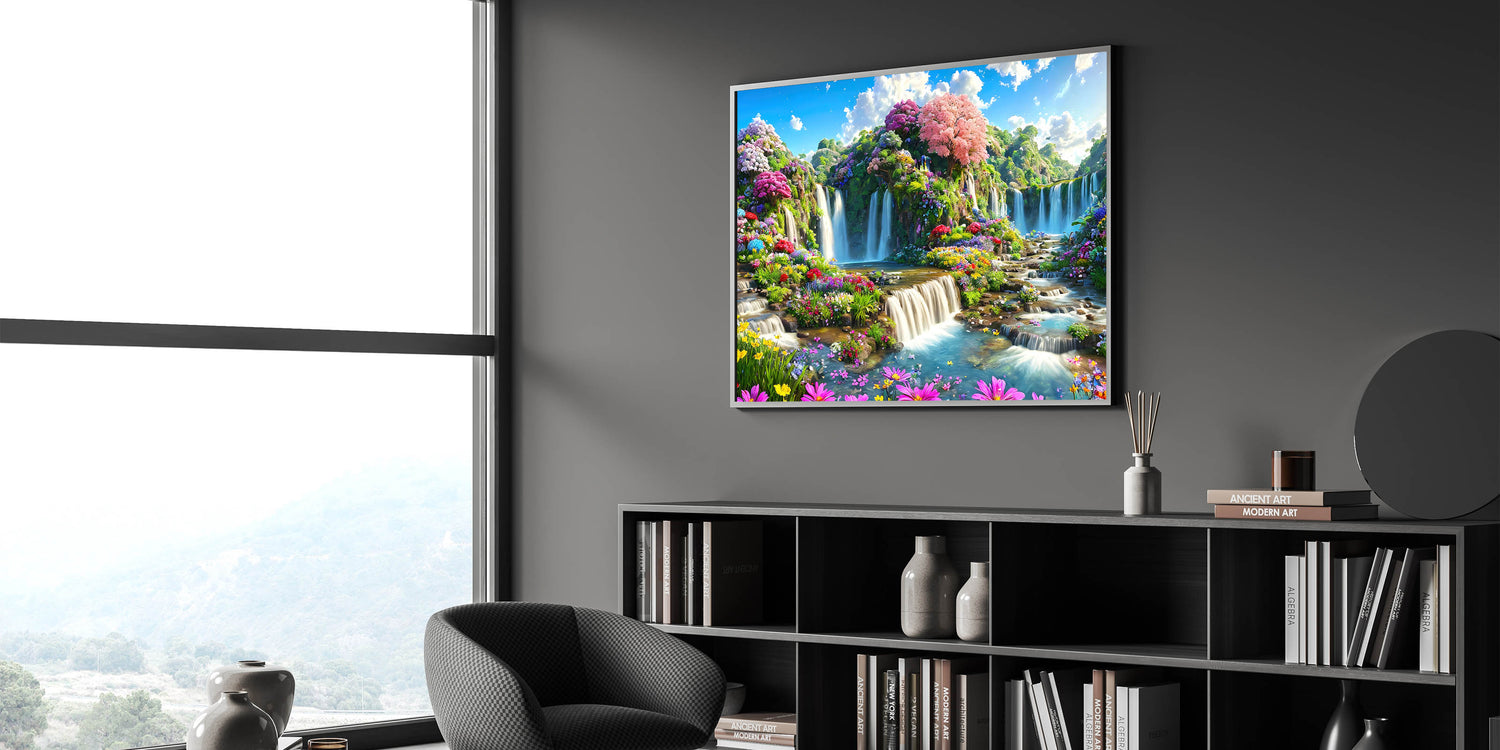 Add a splash of color and the soothing presence of nature to your home with this Vibrant Waterfall Garden Wall Art. Whether you choose canvas, acrylic, or framed options, this artwork will transform your space into a tranquil oasis.