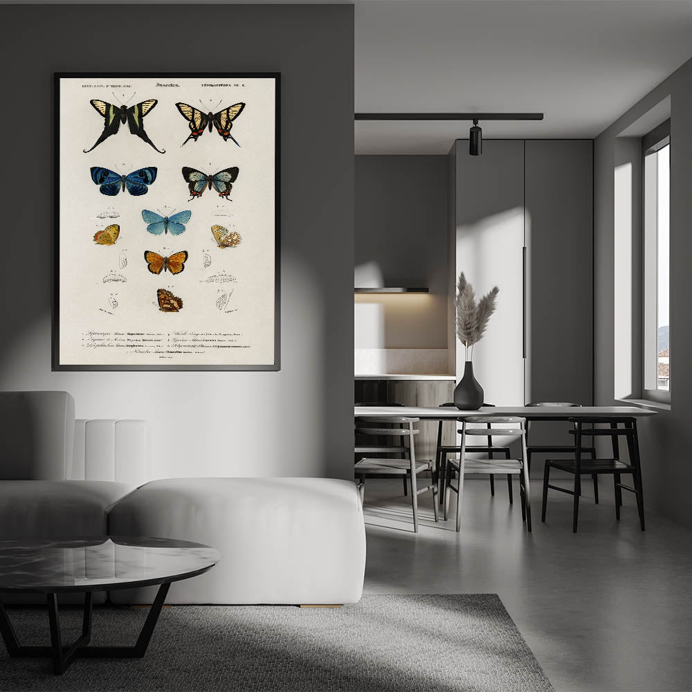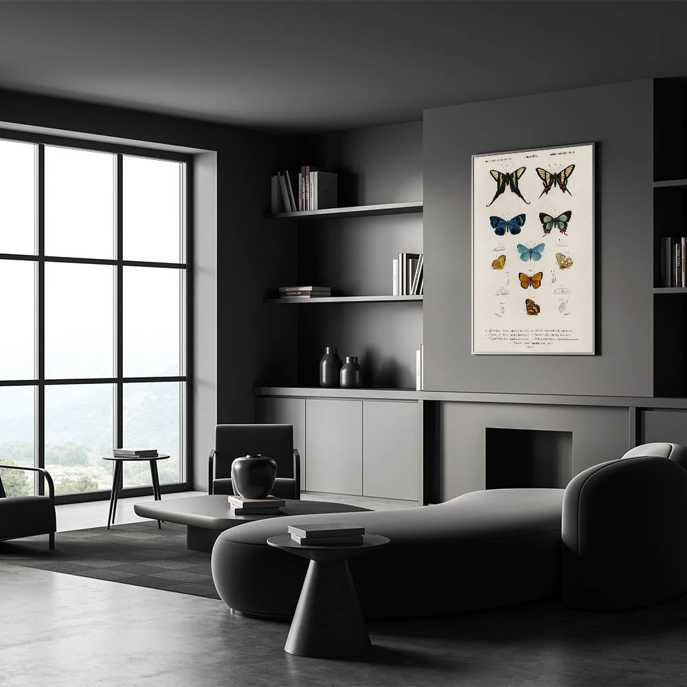 Add a touch of vintage academia to your space with this grunge-inspired wall decor, featuring a detailed chart of butterflies and their developmental stages. The distressed, aged look paired with vibrant butterfly illustrations offers a nostalgic, educational appeal that suits both modern and vintage-inspired interiors. This piece is perfect for lovers of vintage grunge artwork, combining scientific aesthetics with a touch of urban grunge art.