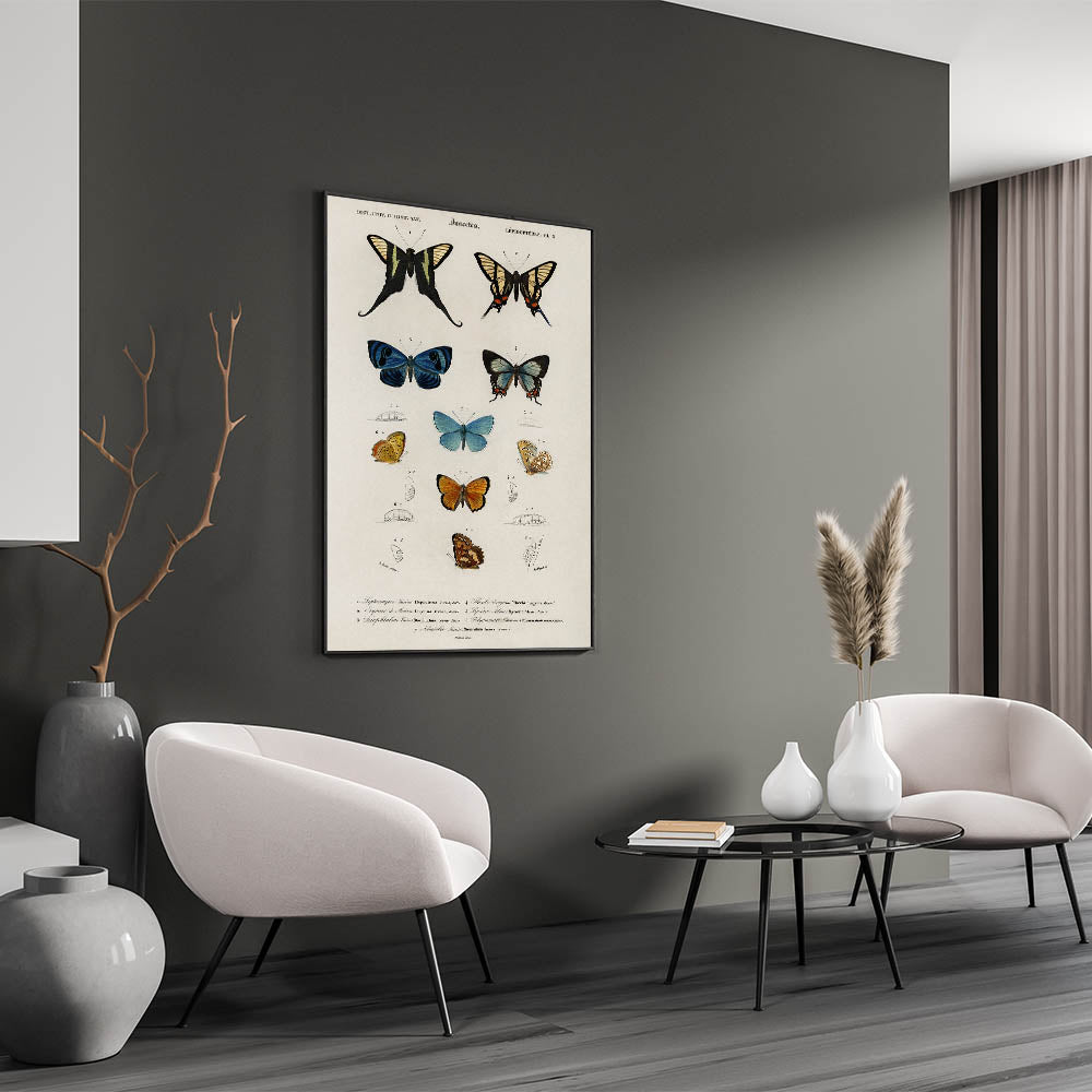 Vintage Grunge Butterfly Chart - Distressed Insect Canvas Wall Art