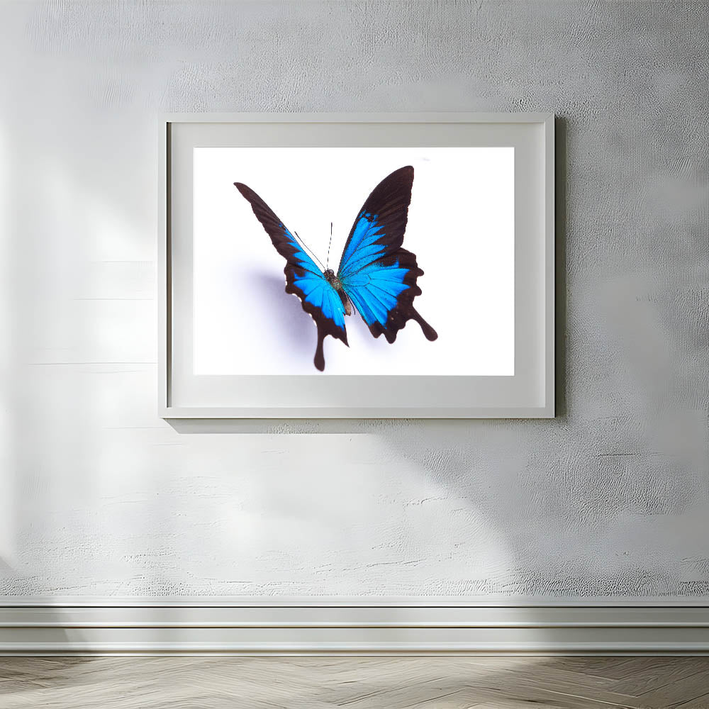 Bring the vivid beauty of nature into your home with this striking blue butterfly wall art. The butterfly’s bright blue wings contrast beautifully against its black edges and the crisp white background, creating a bold and eye-catching piece that will enhance any room. This artwork is perfect for those who appreciate the delicate elegance of butterflies and the vibrant colors of nature.