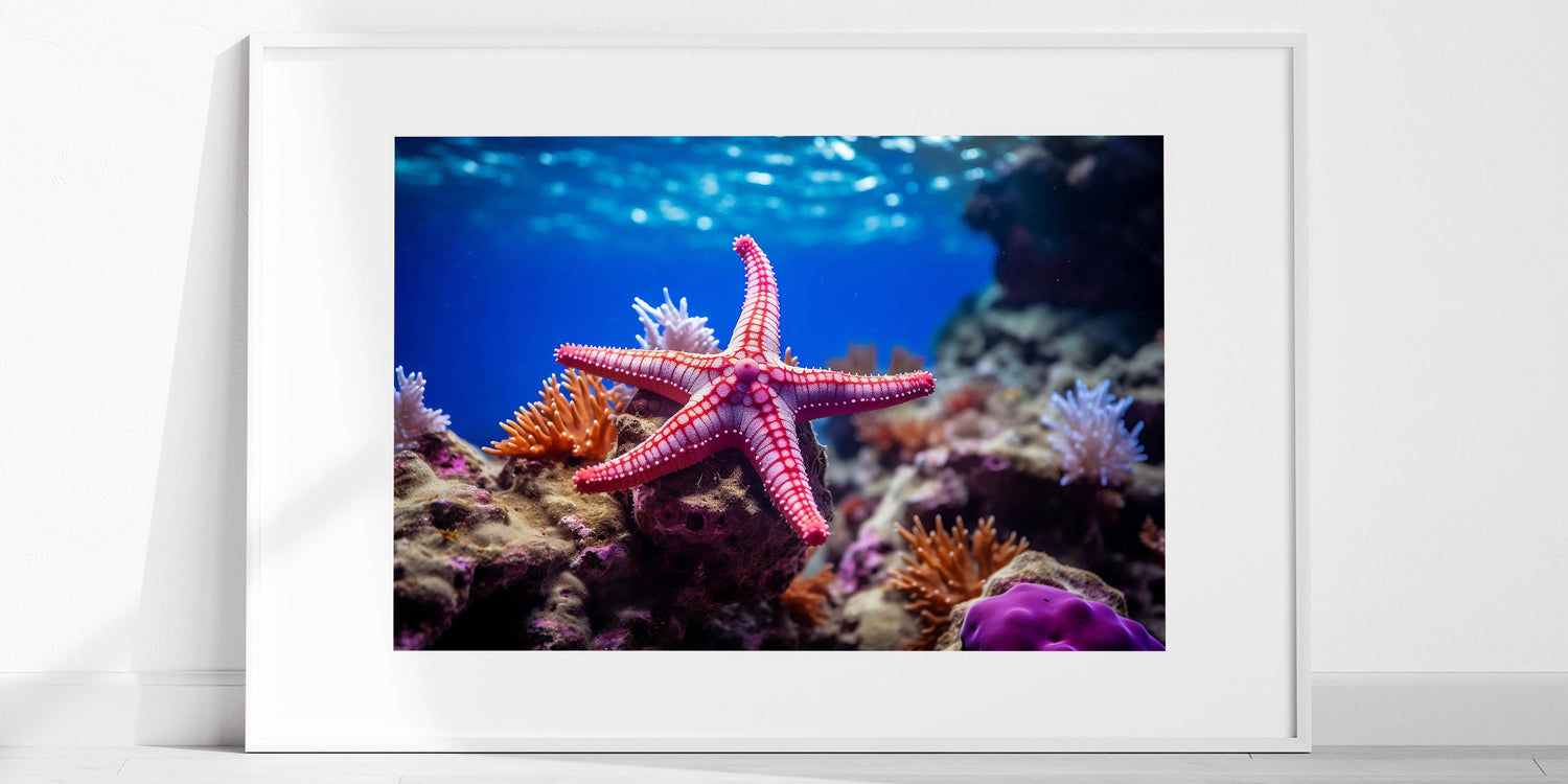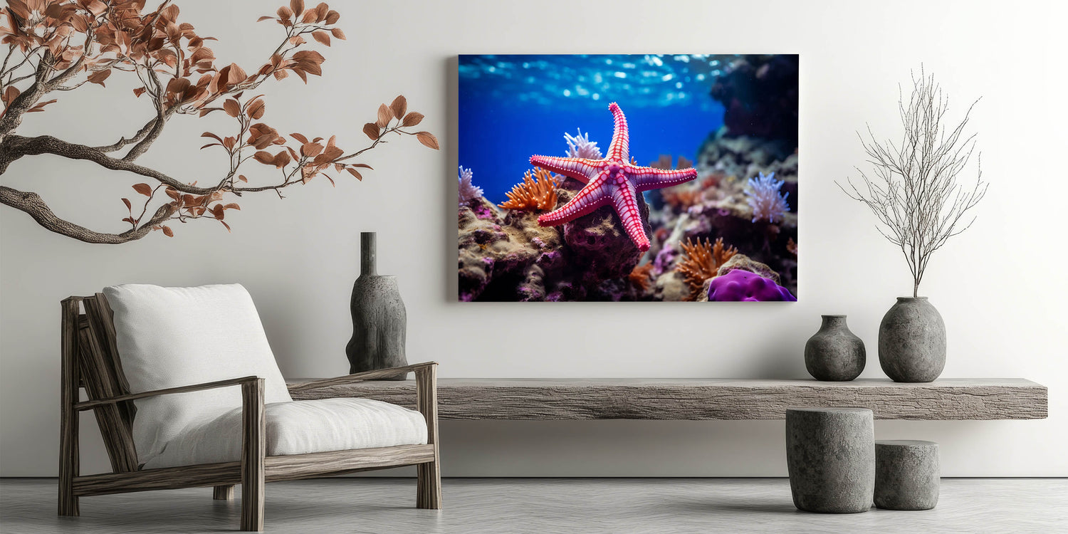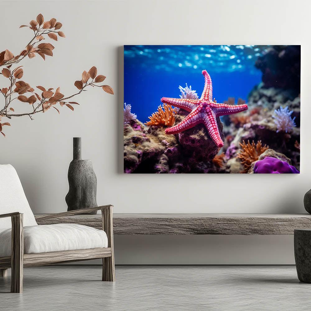 Vivid Coral Reef Starfish Wall Art - Marine Life Canvas & Print Decor