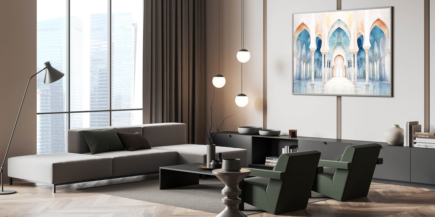 Enhance your home with this beautiful artwork that combines the softness of watercolor with the timelessness of architectural arches. Whether you prefer the classic look of a framed print or the modern feel of acrylic glass, this piece will bring a sense of calm and beauty to any setting. Let the gentle colors and graceful arches inspire and relax you.