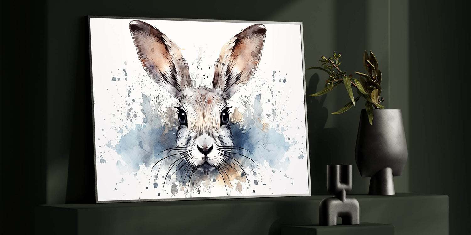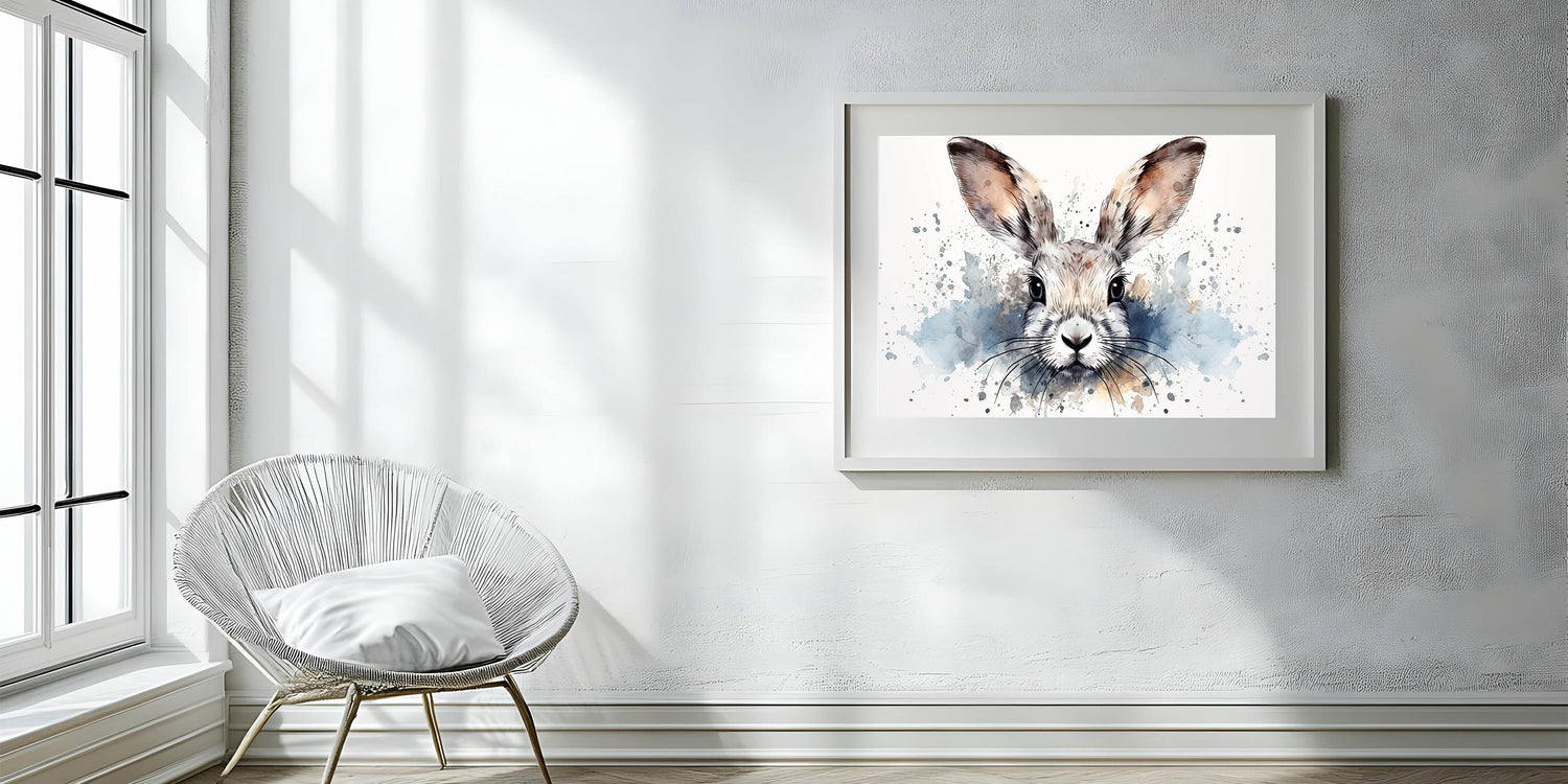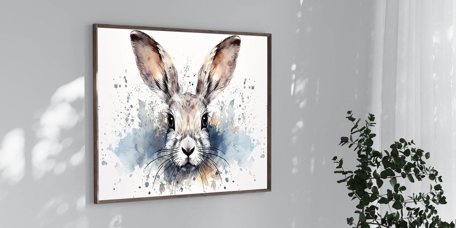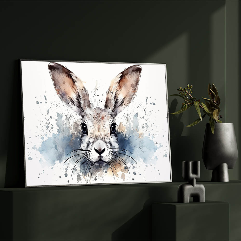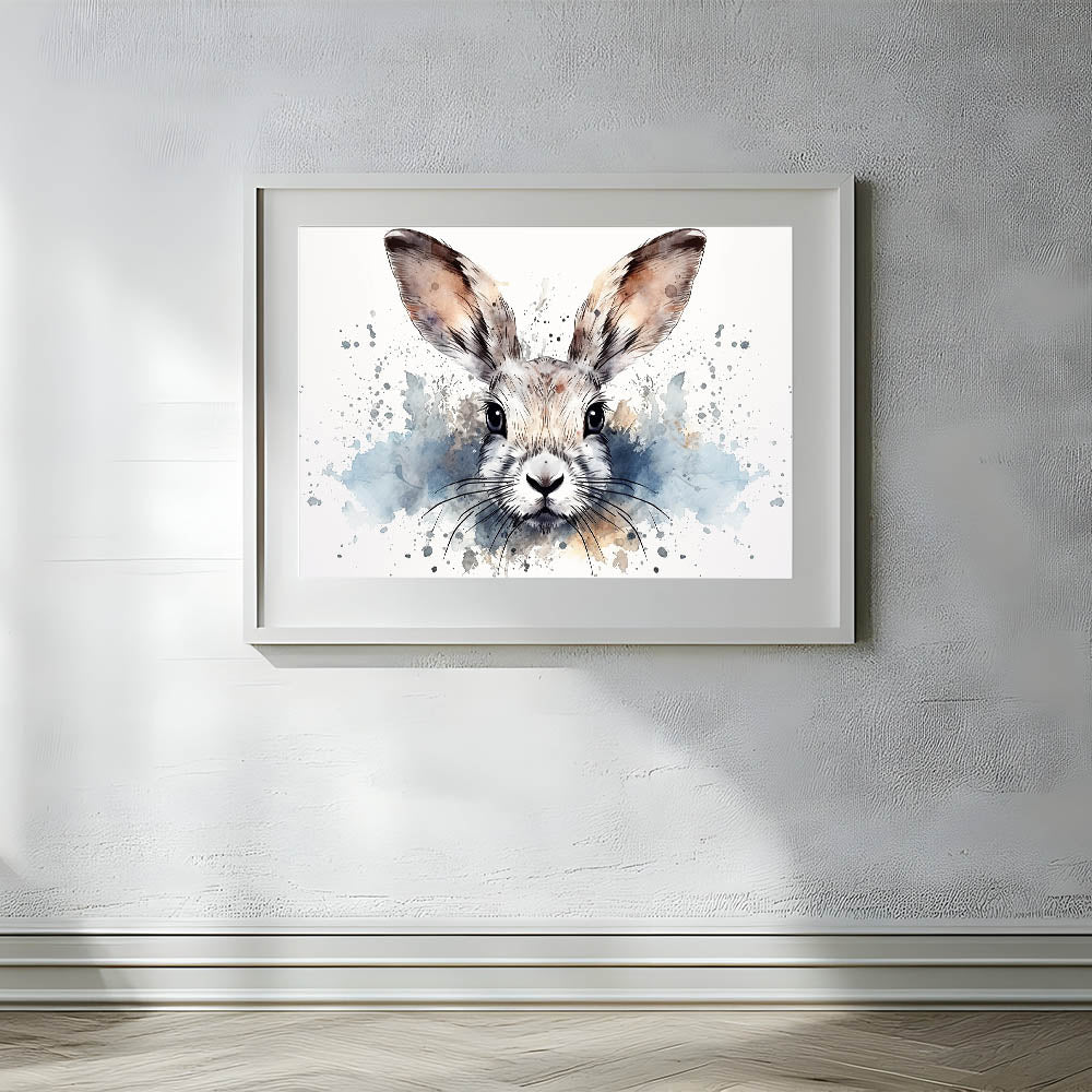 Introduce a splash of creativity to your home with this stunning Watercolor Rabbit Wall Art. This piece features a beautifully detailed rabbit illustration, enhanced by a whimsical watercolor splash effect. The delicate mix of soft blues, earthy browns, and subtle grays creates a calming and inviting atmosphere, making it a perfect addition to any room in your home. Whether you’re a fan of wildlife art or looking to add a touch of artistry to your space, this rabbit artwork is an excellent choice.