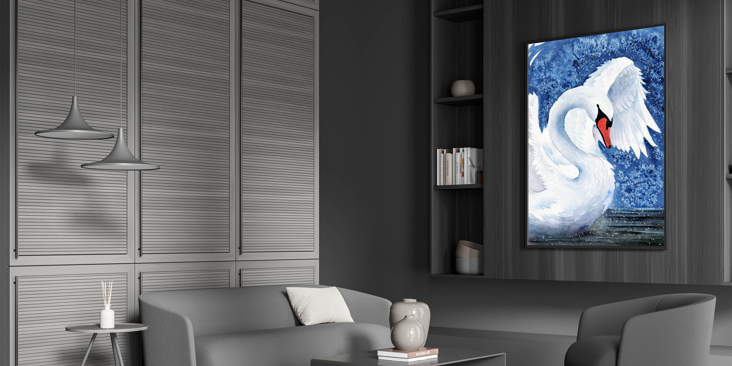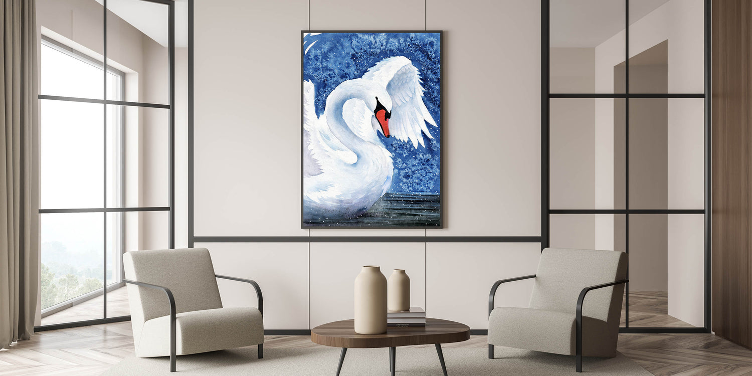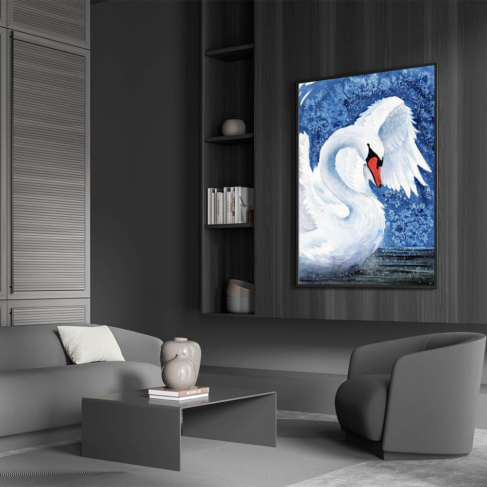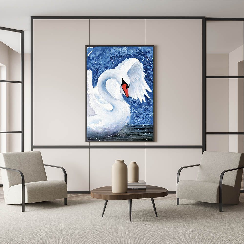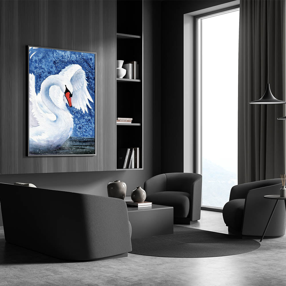 This swan art print is more than just a decorative piece; it’s a celebration of nature’s quiet elegance. Perfect for living rooms, bedrooms, or any space that needs a touch of calm, this artwork will bring a sense of winter wonderland charm to your decor.