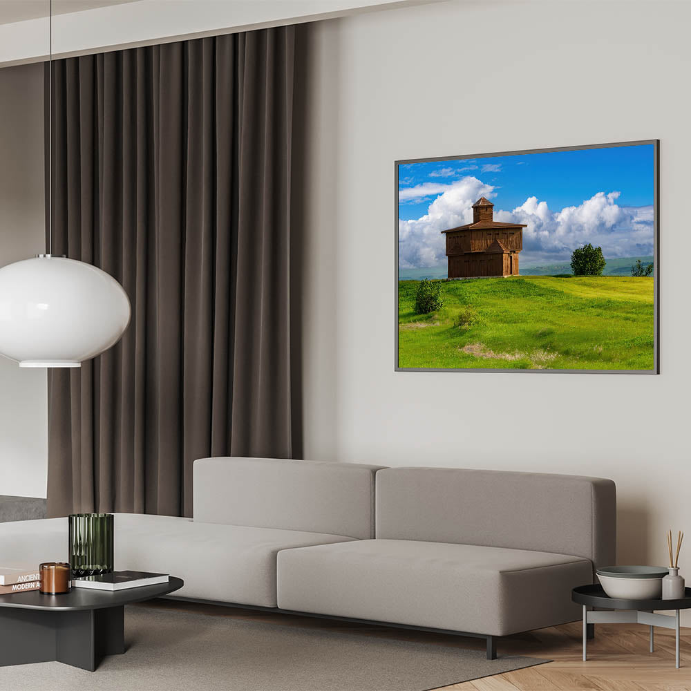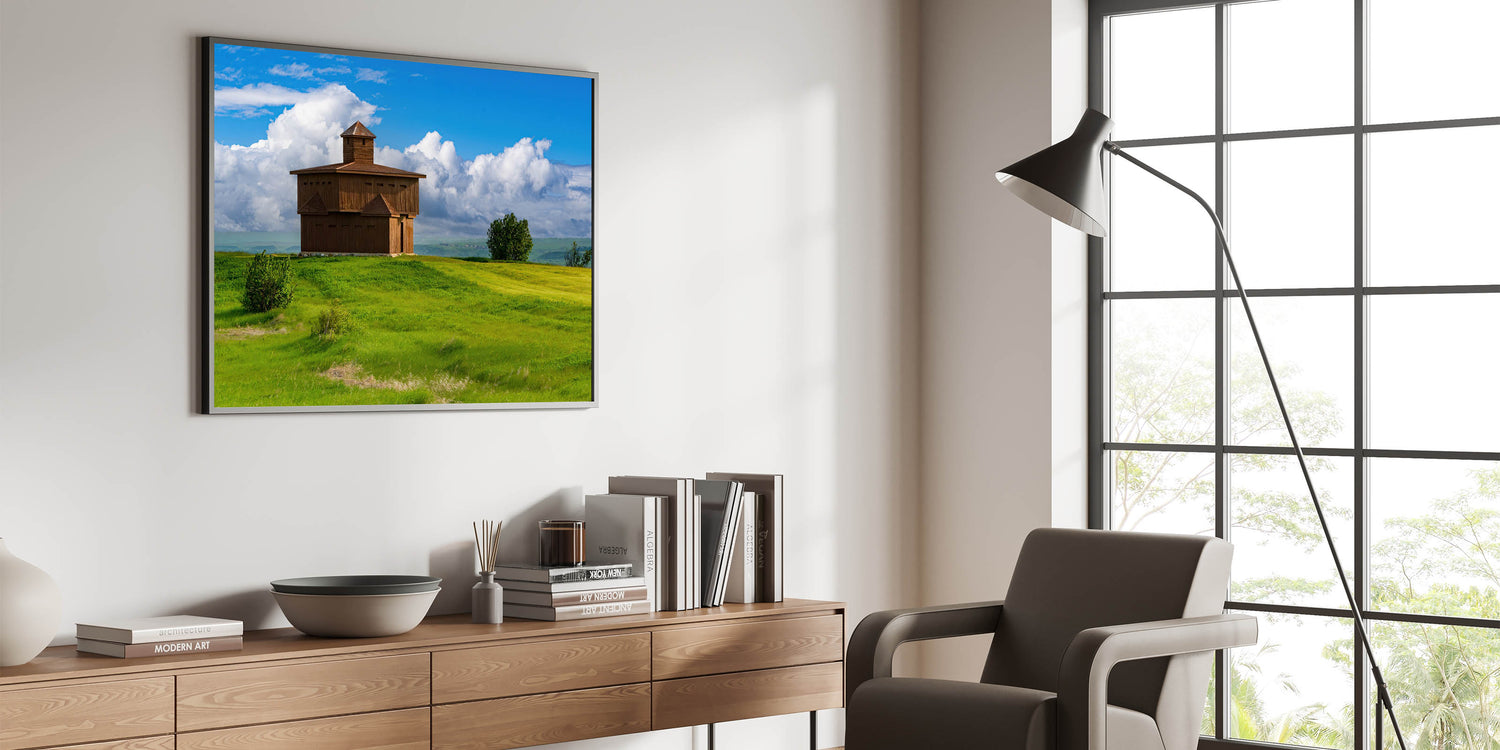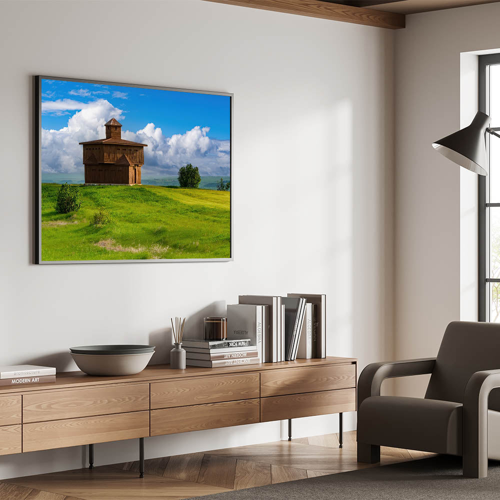 Bring the beauty of North Dakota’s landscapes into your home with this stunning wall art featuring a solitary wooden structure set against vibrant green fields and a bright blue sky. The picturesque scene captures the peacefulness and charm of North Dakota's rural landscapes, making it a perfect addition to any living space. Whether you prefer the warmth of framed art or the modern look of acrylic prints, this North Dakota wall art is available in multiple high-quality formats to suit any decor style.