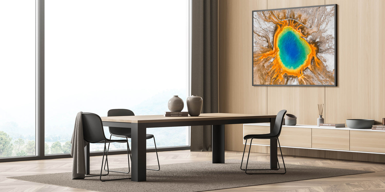 This Yellowstone scenic art will bring the grandeur of Yellowstone’s natural wonders into your home, creating a striking focal point in any room. Whether displayed in a living room, office, or bedroom, this dynamic artwork is sure to impress.