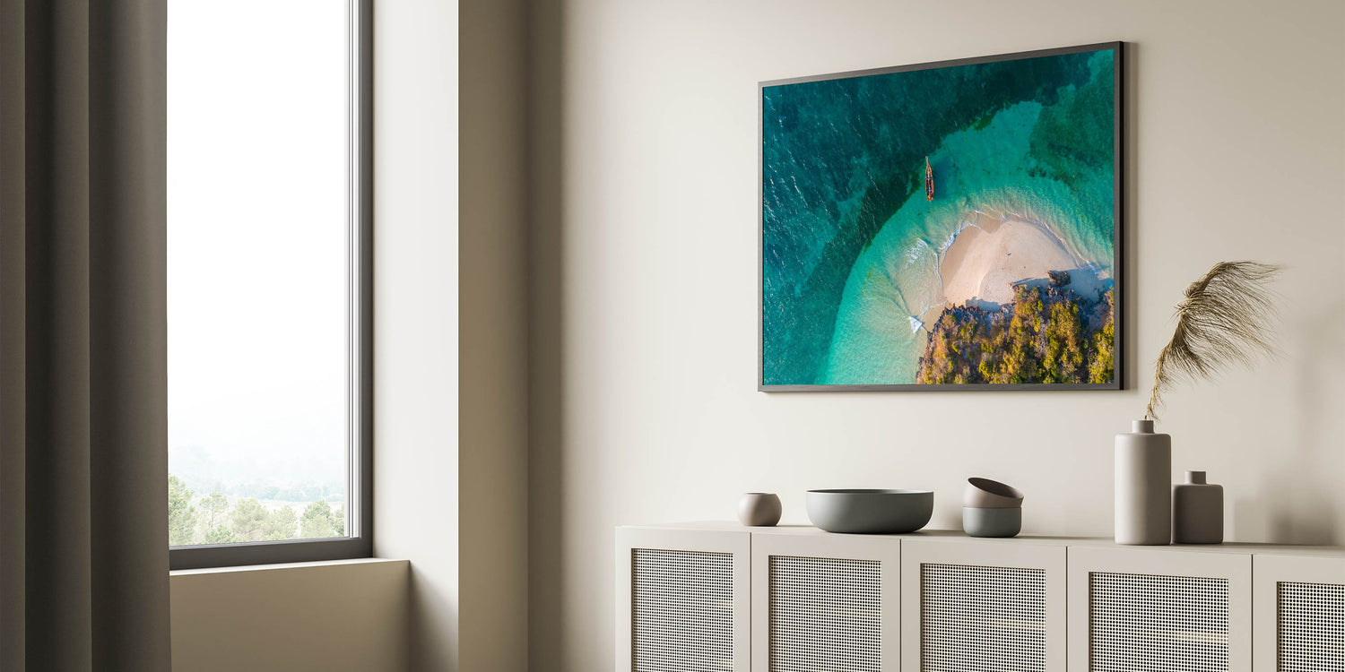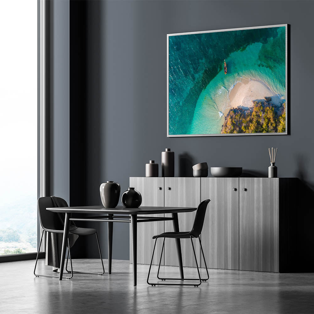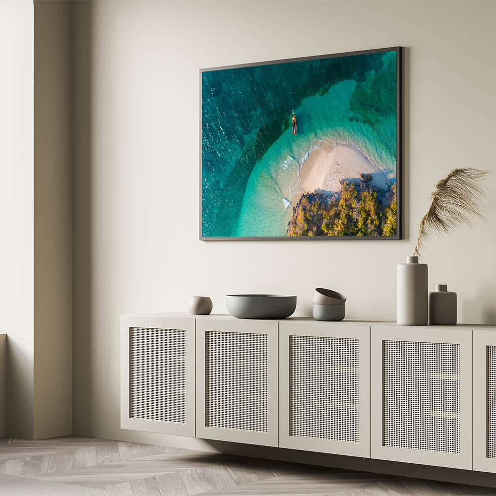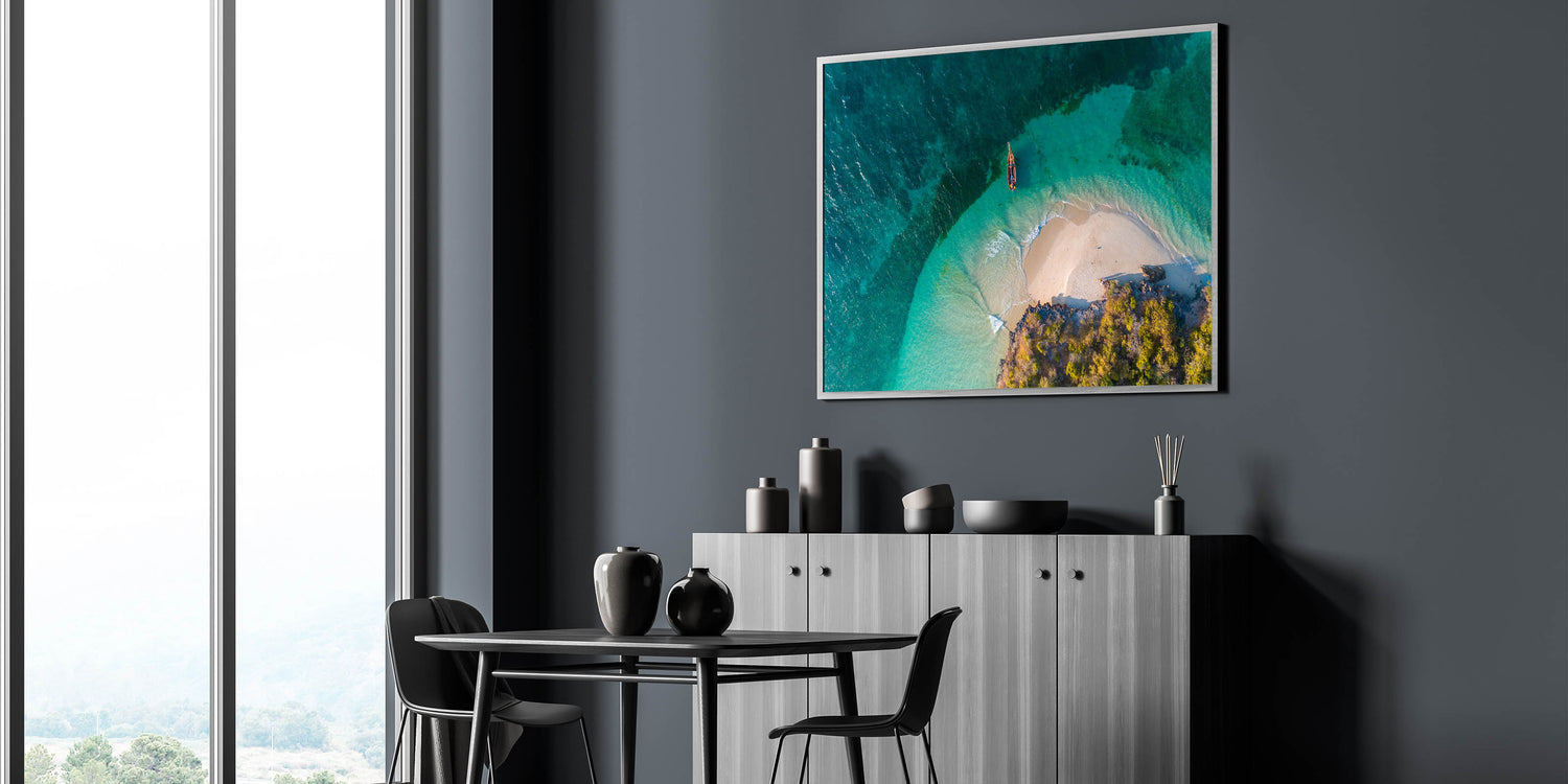 This Zanzibar aerial beach artwork will transport you to the idyllic shores of East Africa, making it perfect for creating a serene atmosphere in your home or office. Whether as a canvas print or framed art, this piece will evoke the calm and beauty of a tropical getaway.