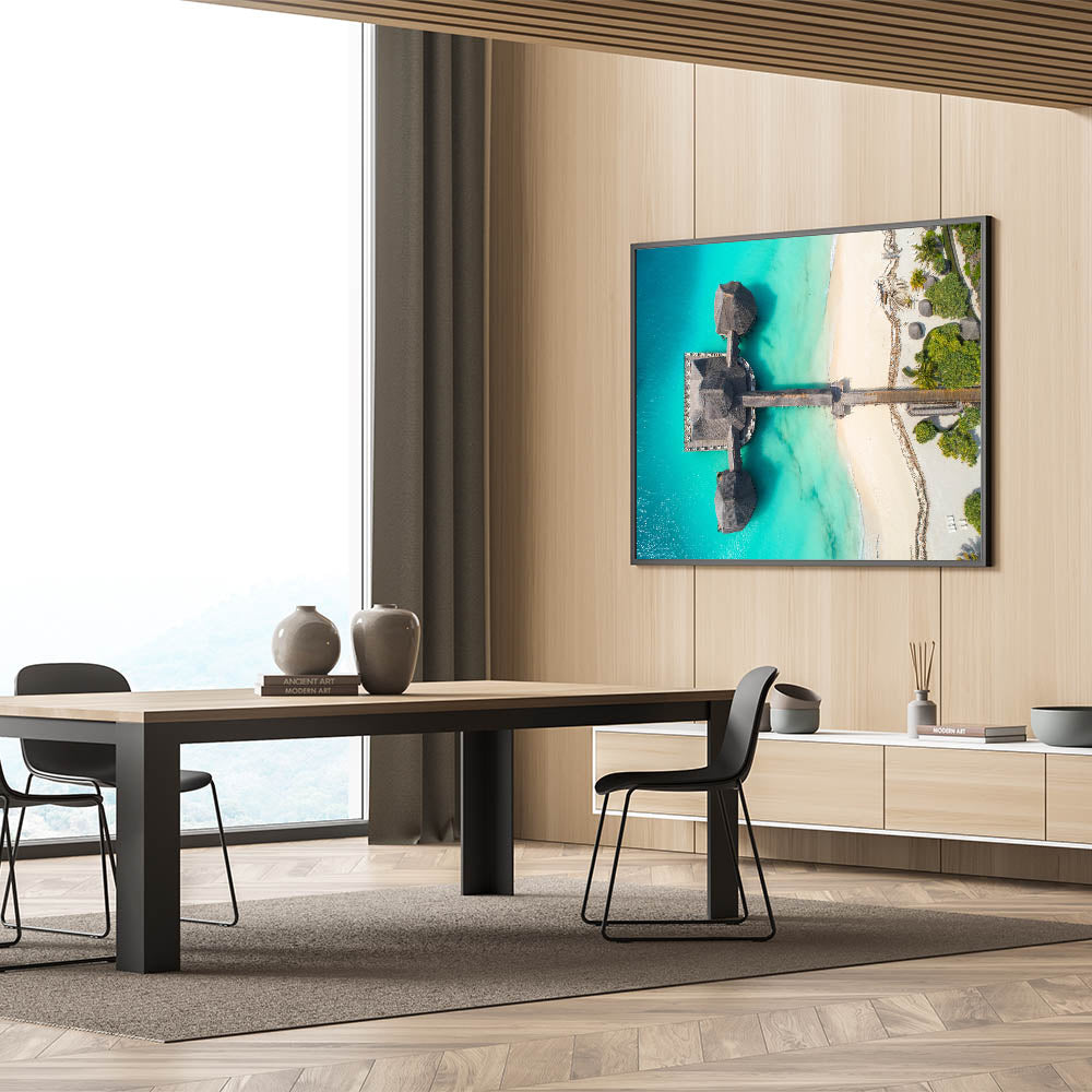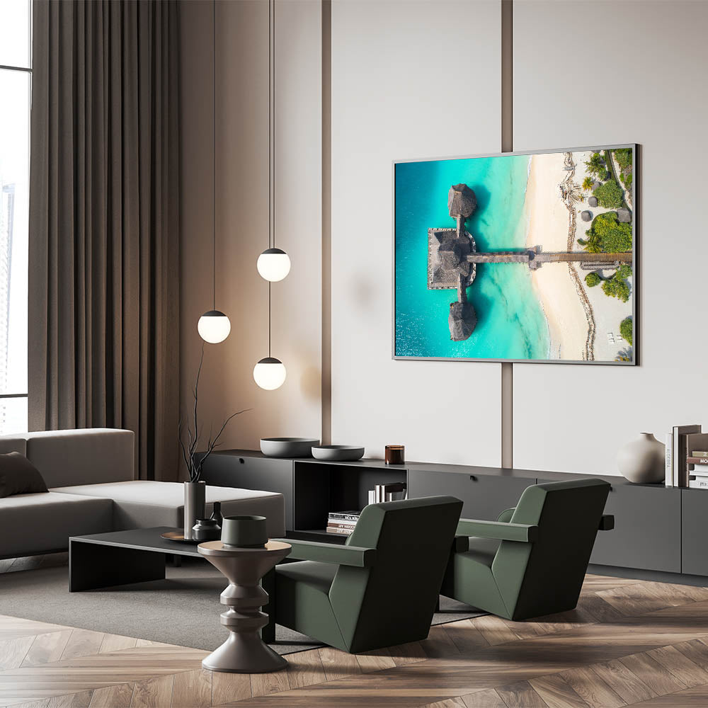 This Zanzibar aerial beach view artwork is perfect for bringing the beauty and calmness of an exotic destination into your home. Whether it’s for your living room, office, or any space in need of a tropical escape, this artwork will inspire relaxation and tranquility.