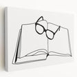 Bohemian Wall Art - Minimalist Line Art of Open Book and Glasses Canvas
