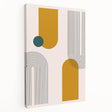 Add a splash of vibrant color and sleek geometric design to your home with this bohemian wall art. Featuring bold mustard yellow and teal shapes alongside curved black lines, this boho decor canvas offers a perfect blend of modern elegance and eclectic charm. The balance between the minimalistic lines and bold blocks of color creates a visually captivating piece that’s perfect for any boho-chic or contemporary interior.