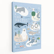 Introduce your child to the wonders of the Arctic with this kids wall art print featuring adorable polar animals like whales, penguins, foxes, and polar bears. The playful design and cool color palette create a soothing atmosphere, making it a perfect choice for nursery wall art, boys' bedroom art, or playroom wall art. This educational and decorative piece helps spark curiosity about wildlife and nature.