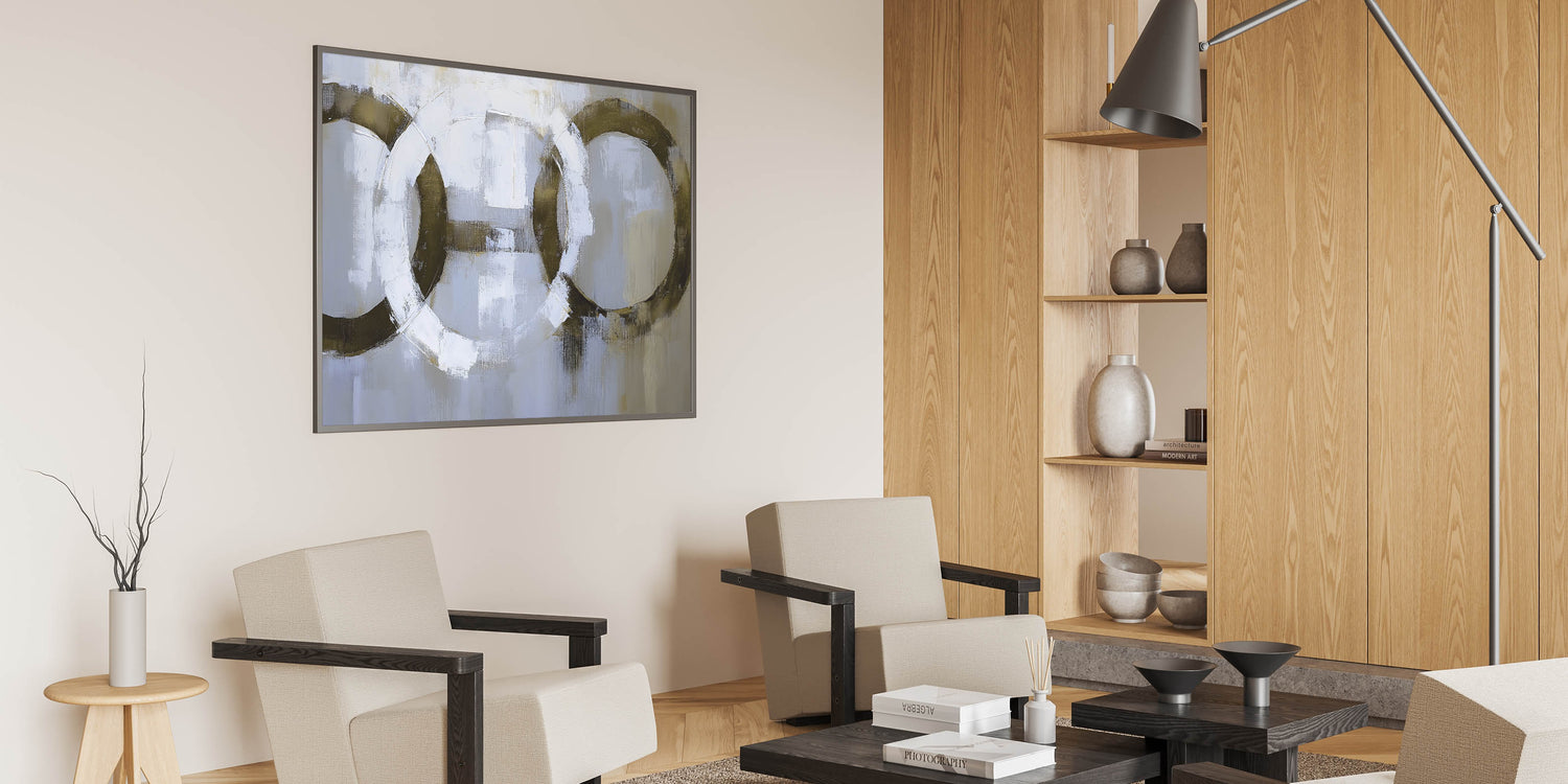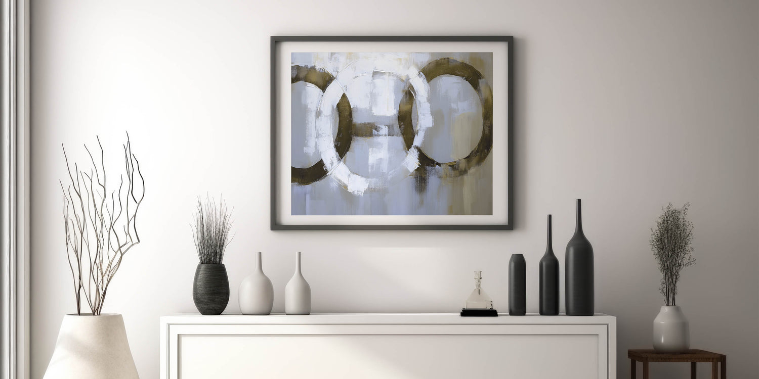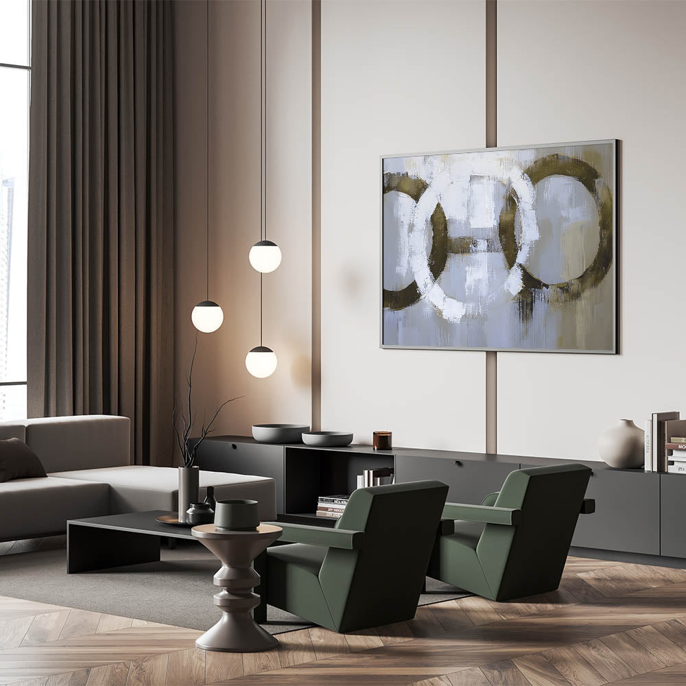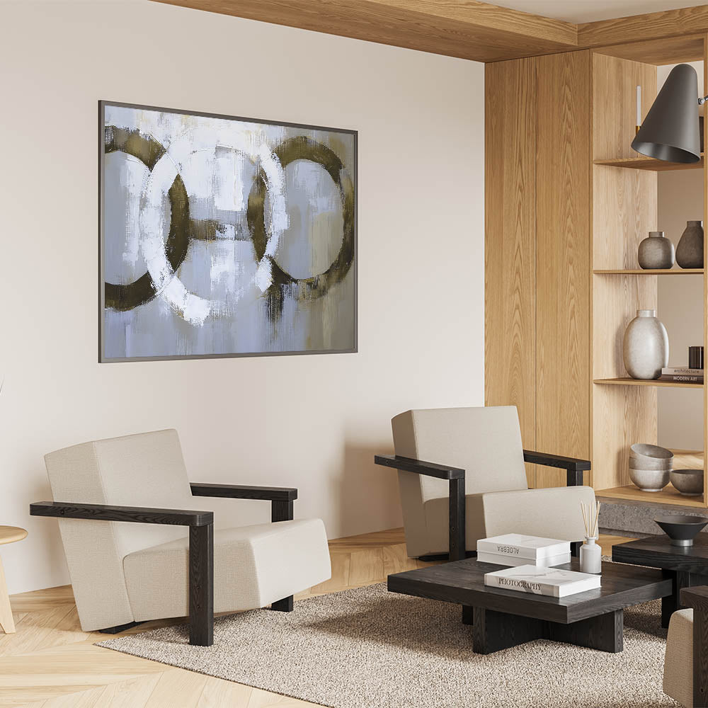 Add timeless elegance to your interiors with this Abstract Geometric Painting, showcasing a dynamic composition of overlapping circular forms. Rendered in a soft palette of white, beige, and deep brown tones, this piece exudes understated sophistication. The textured brushstrokes and abstract design create a sense of depth and movement, making it perfect for modern and transitional spaces.