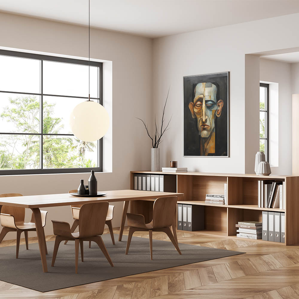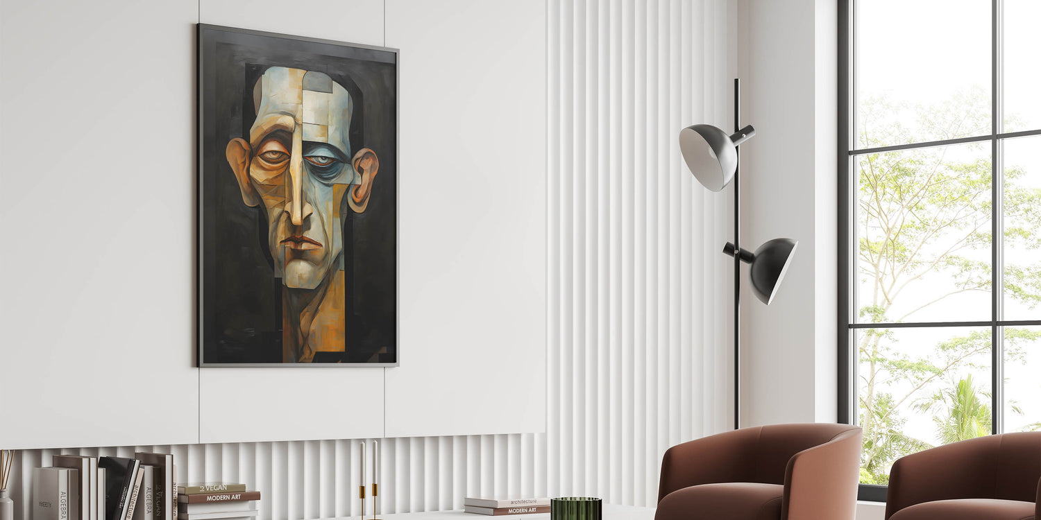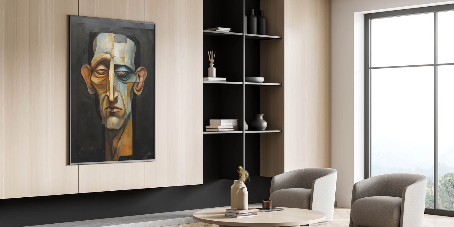 This modern figurative wall art captures the essence of human emotion and artistic abstraction. Elevate your decor with this stunning cubist-inspired portrait, a unique blend of classic and contemporary artistry.