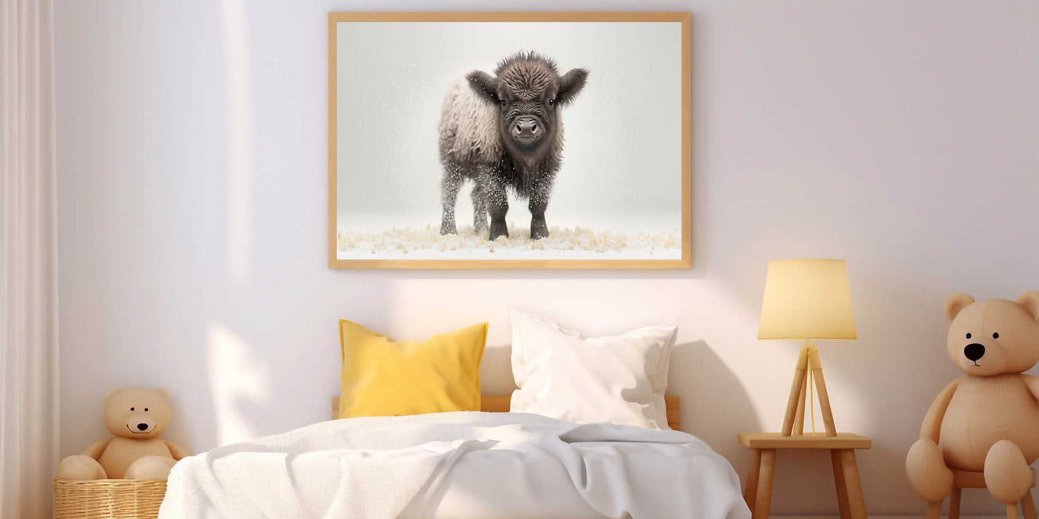 Adorable Baby Bison Wall Art - Perfect for Kids Room Decor