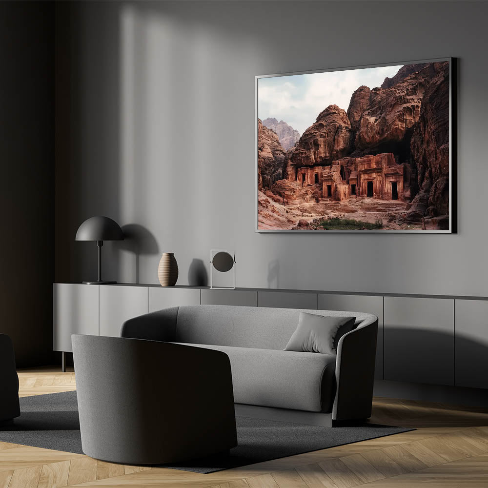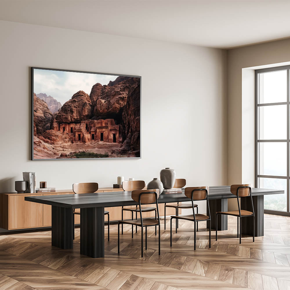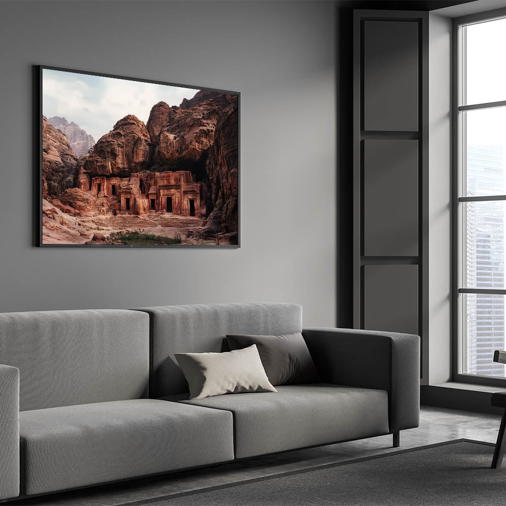 Journey back in time with this stunning ancient canyon ruins wall art, showcasing intricately carved stone structures set against a backdrop of majestic canyon cliffs. This captivating design captures the essence of historic architecture and natural beauty, making it an excellent addition for history buffs and nature lovers alike.