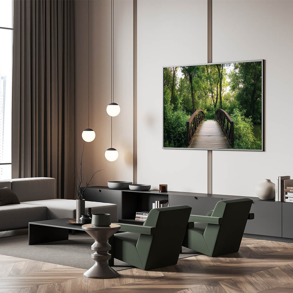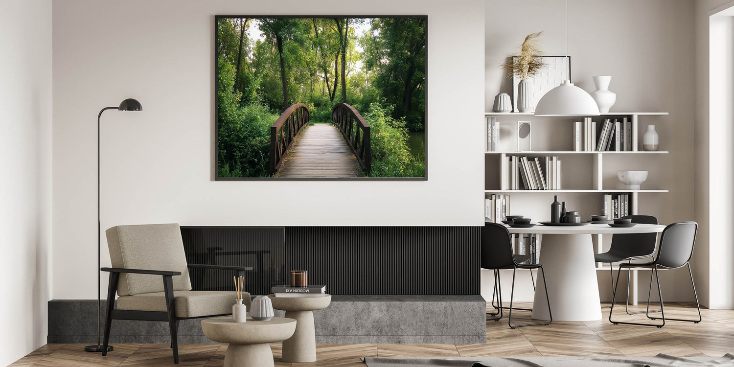 - Premium-quality bridge paintings available in Stretched Canvas, Framed Canvas, Acrylic Glass, and Framed Acrylic Glass formats.