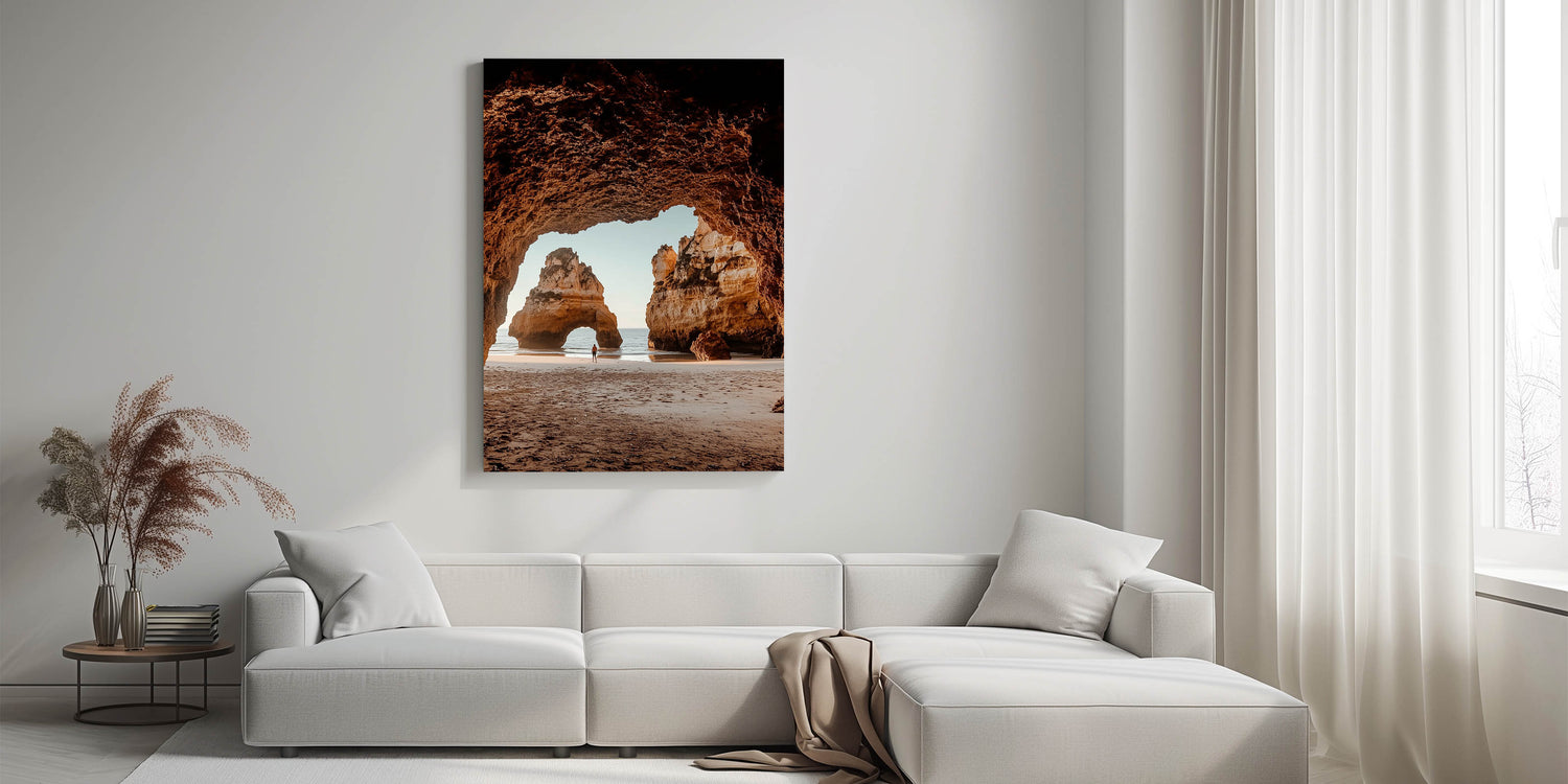 - High-quality prints of natural cave landscapes available on stretched canvas, acrylic glass, or framed options.