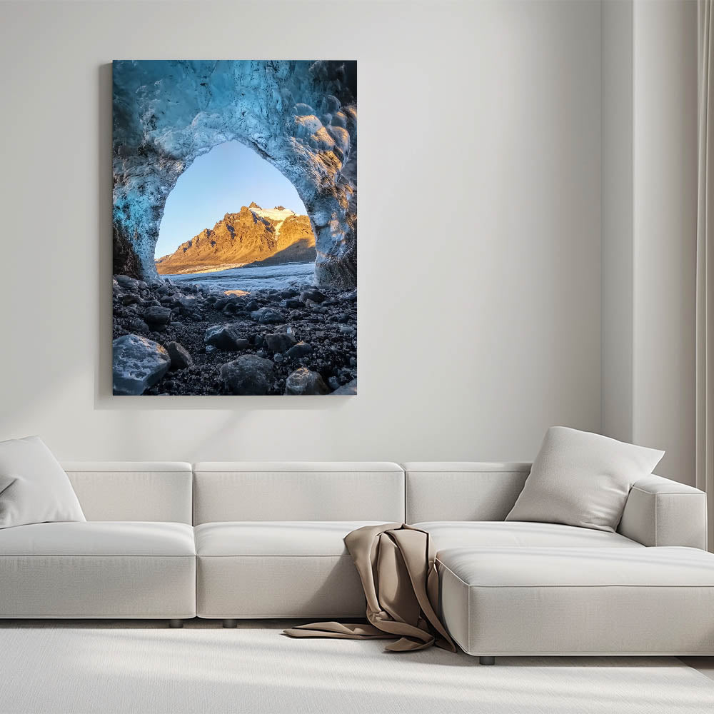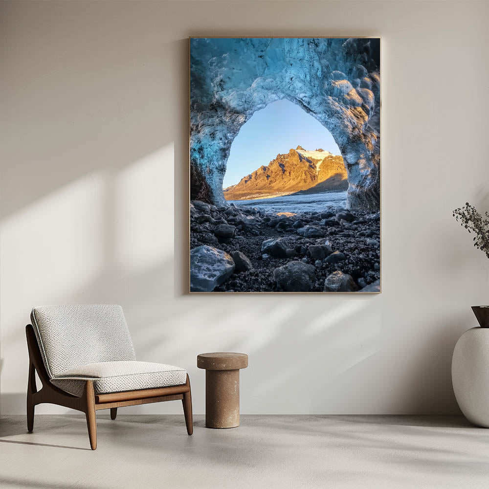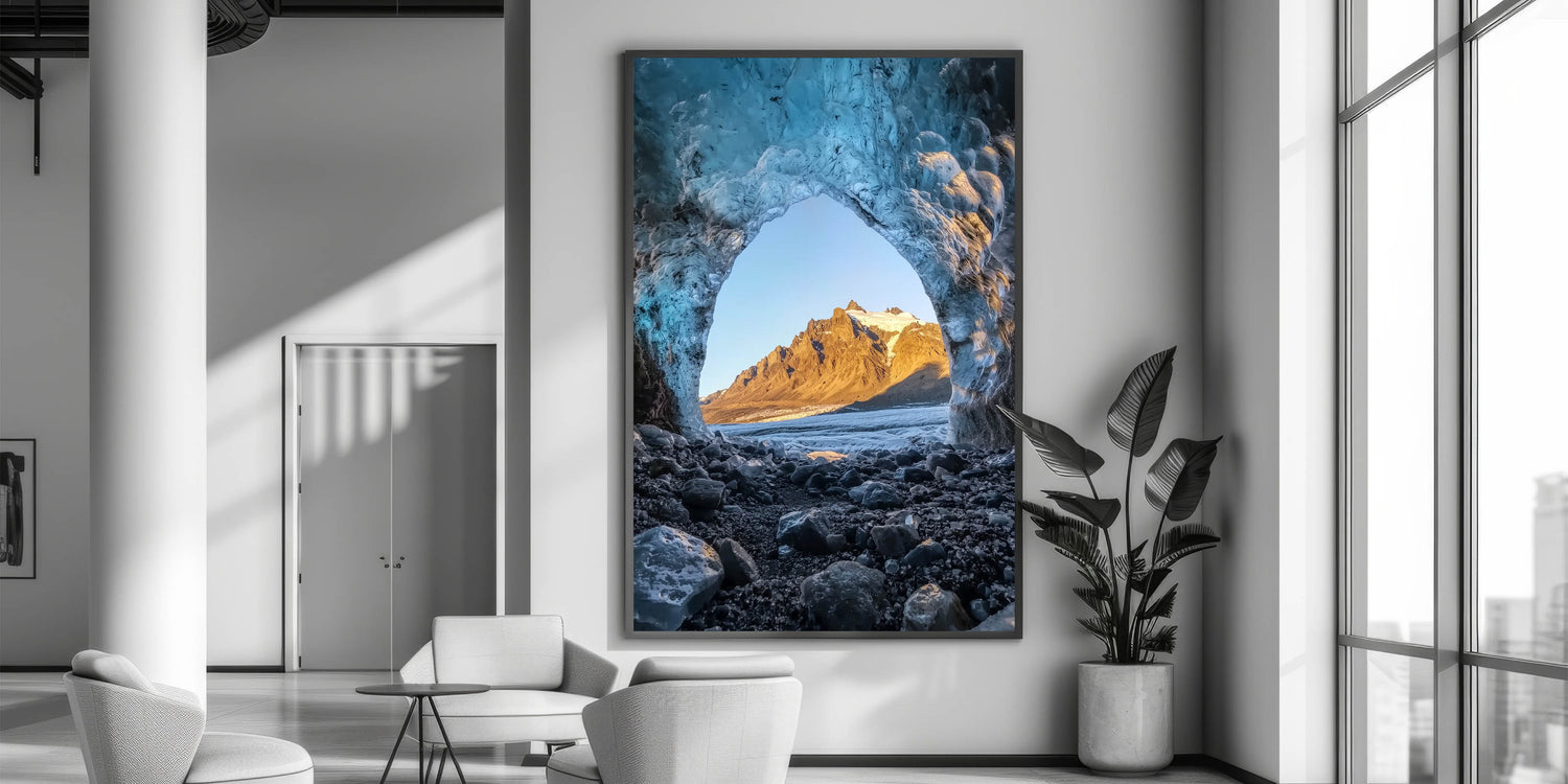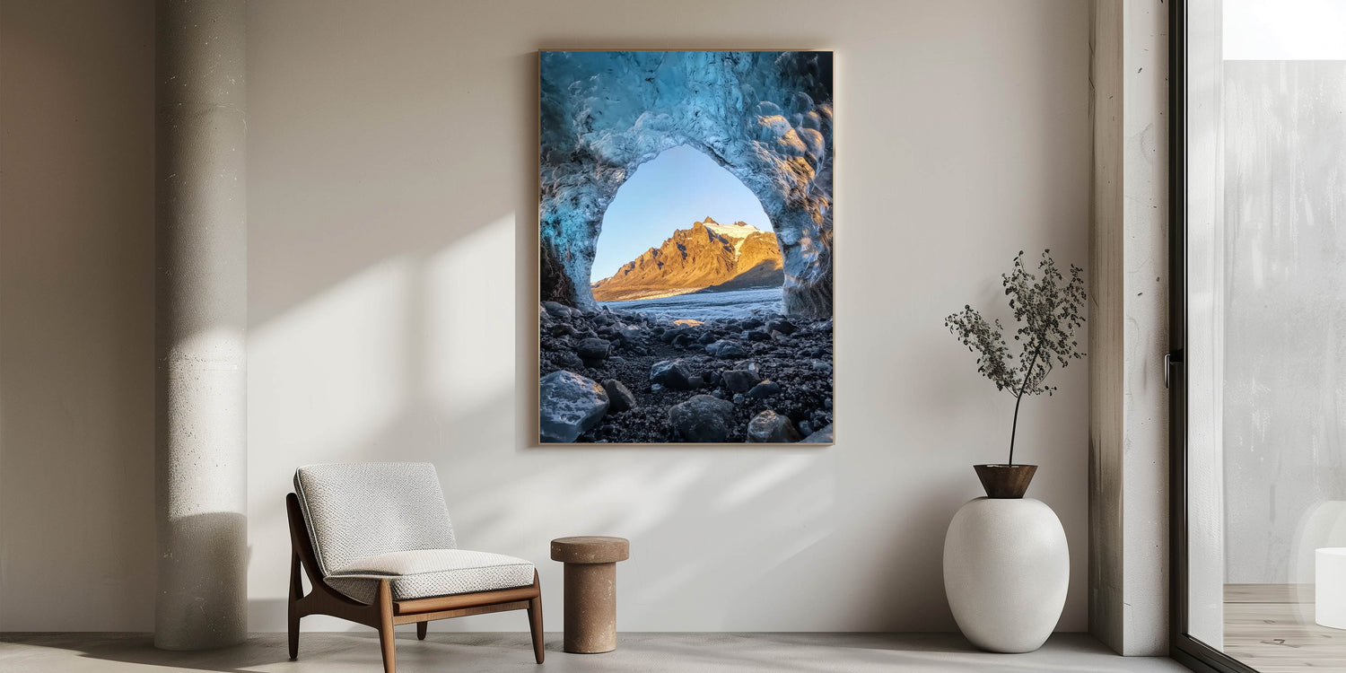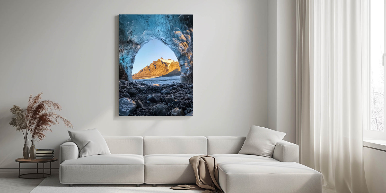 - High-quality prints of natural cave landscapes available in stretched canvas, acrylic, framed, and rolled options.