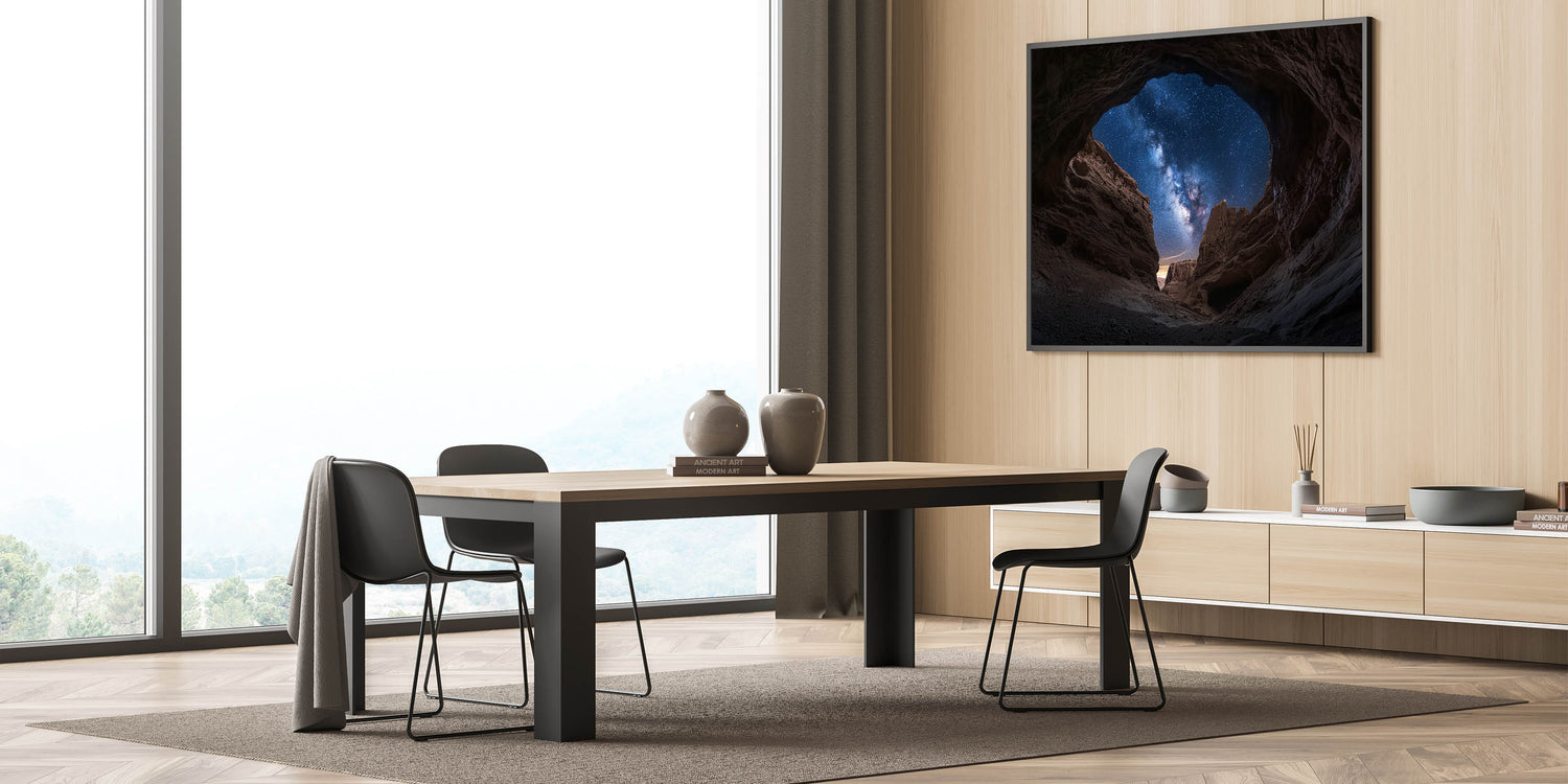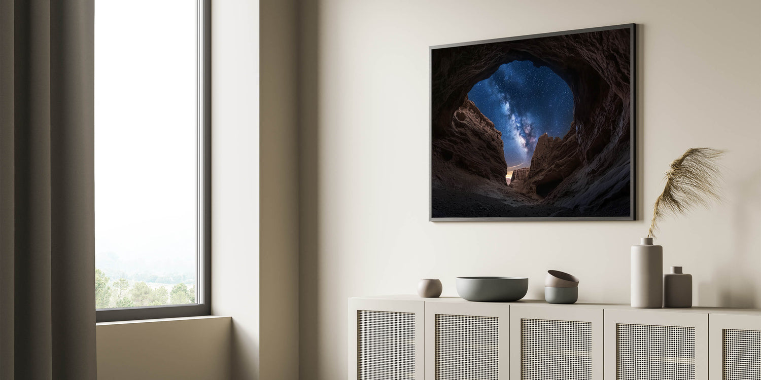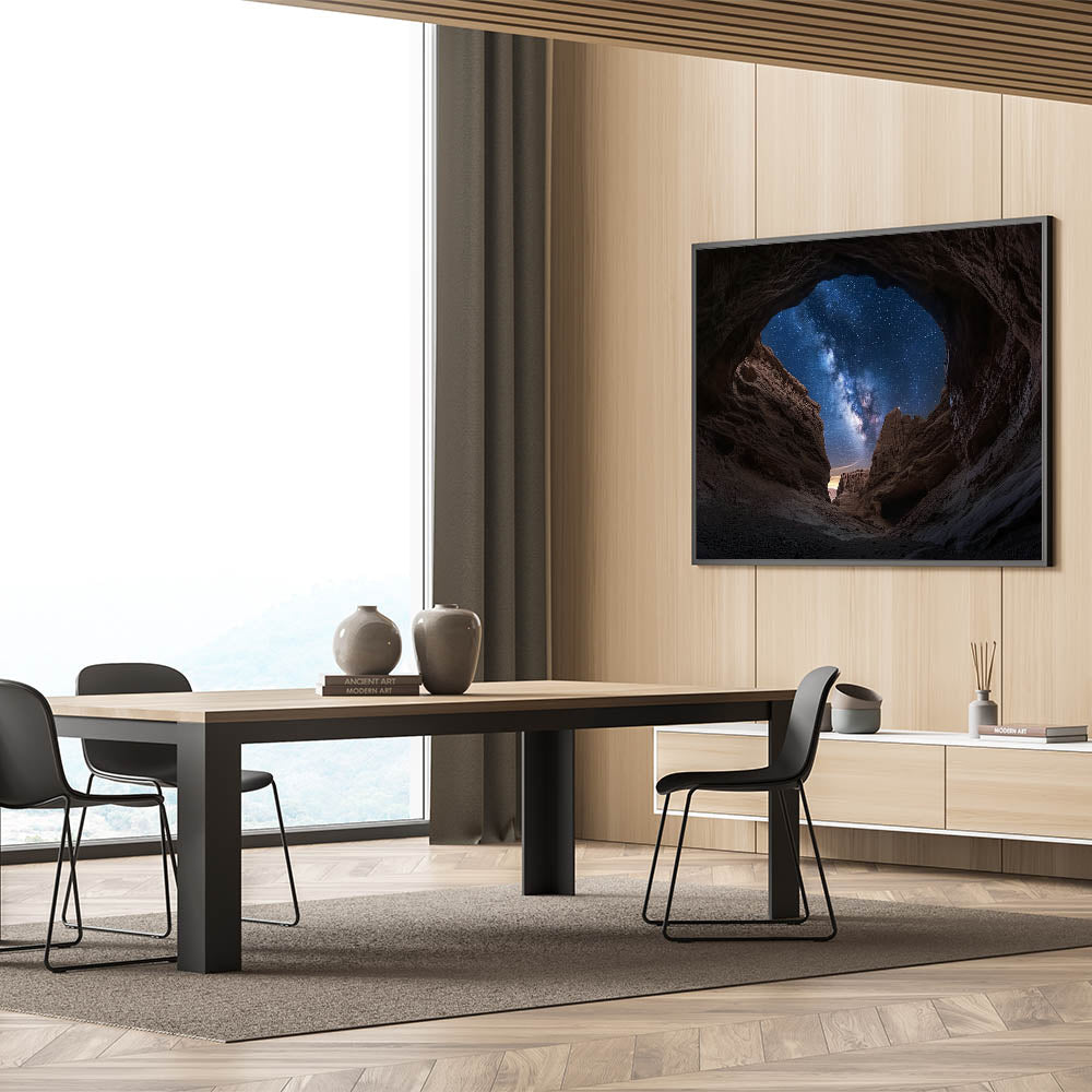 Bring a sense of wonder and tranquility to your decor with this celestial canyon piece. Perfect for stargazers and nature lovers alike, it combines the grandeur of Earth and the vastness of space into a single captivating design. Explore our collection today to transform your space with cosmic elegance.