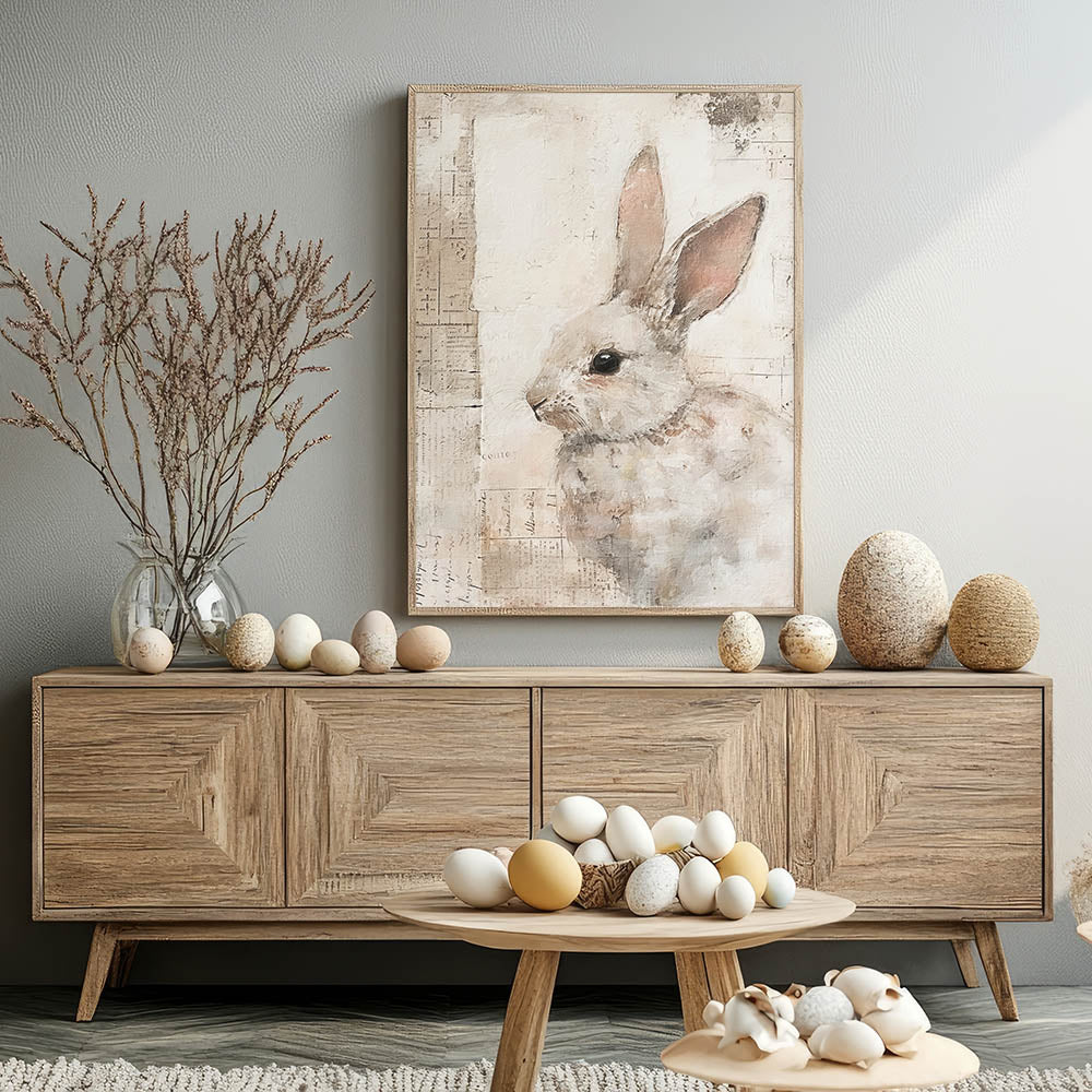 This Easter artwork is perfect for creating a warm and inviting atmosphere, celebrating the innocence and beauty of the season.