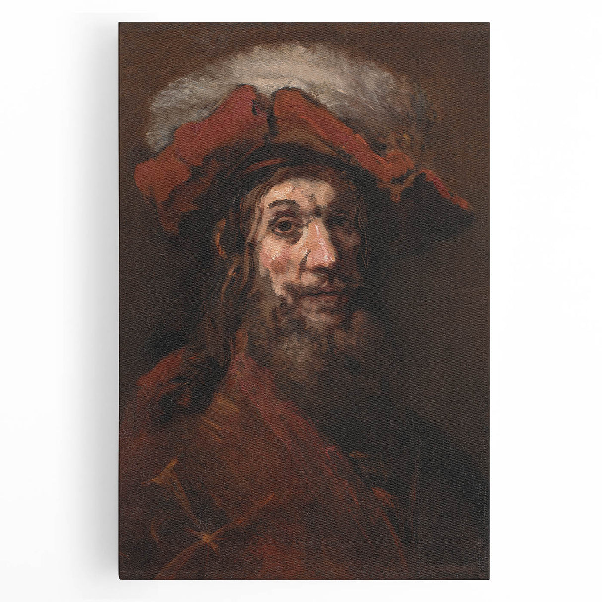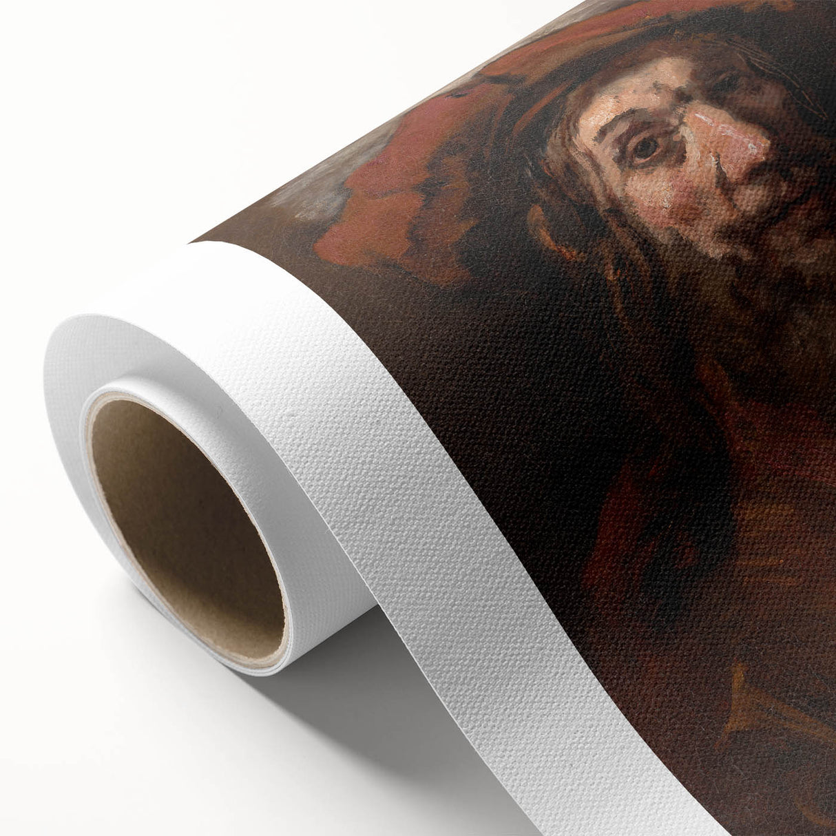 Dive into the captivating allure of Baroque art with this expressive and enigmatic portrait. Featuring a figure adorned with a striking red hat and dramatic lighting, this piece showcases the raw emotion and intricate detailing characteristic of the Baroque era. The rich textures and muted palette add depth, making this artwork a timeless addition to any collection.