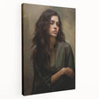 This nostalgic portrait art embodies depth and elegance, featuring a contemplative woman captured in rich, painterly textures. The warm earth tones and soft lighting create a timeless portrait print that radiates sophistication. Ideal for those who appreciate historic portrait decor, this artwork evokes emotion and classical beauty.