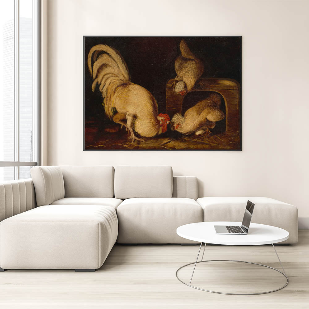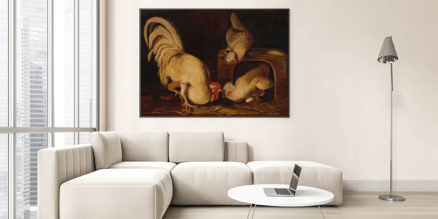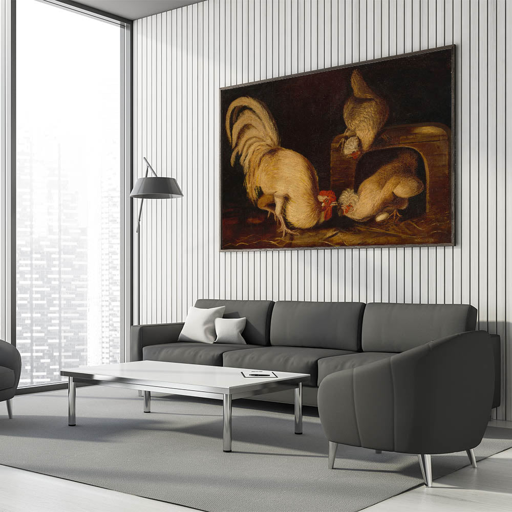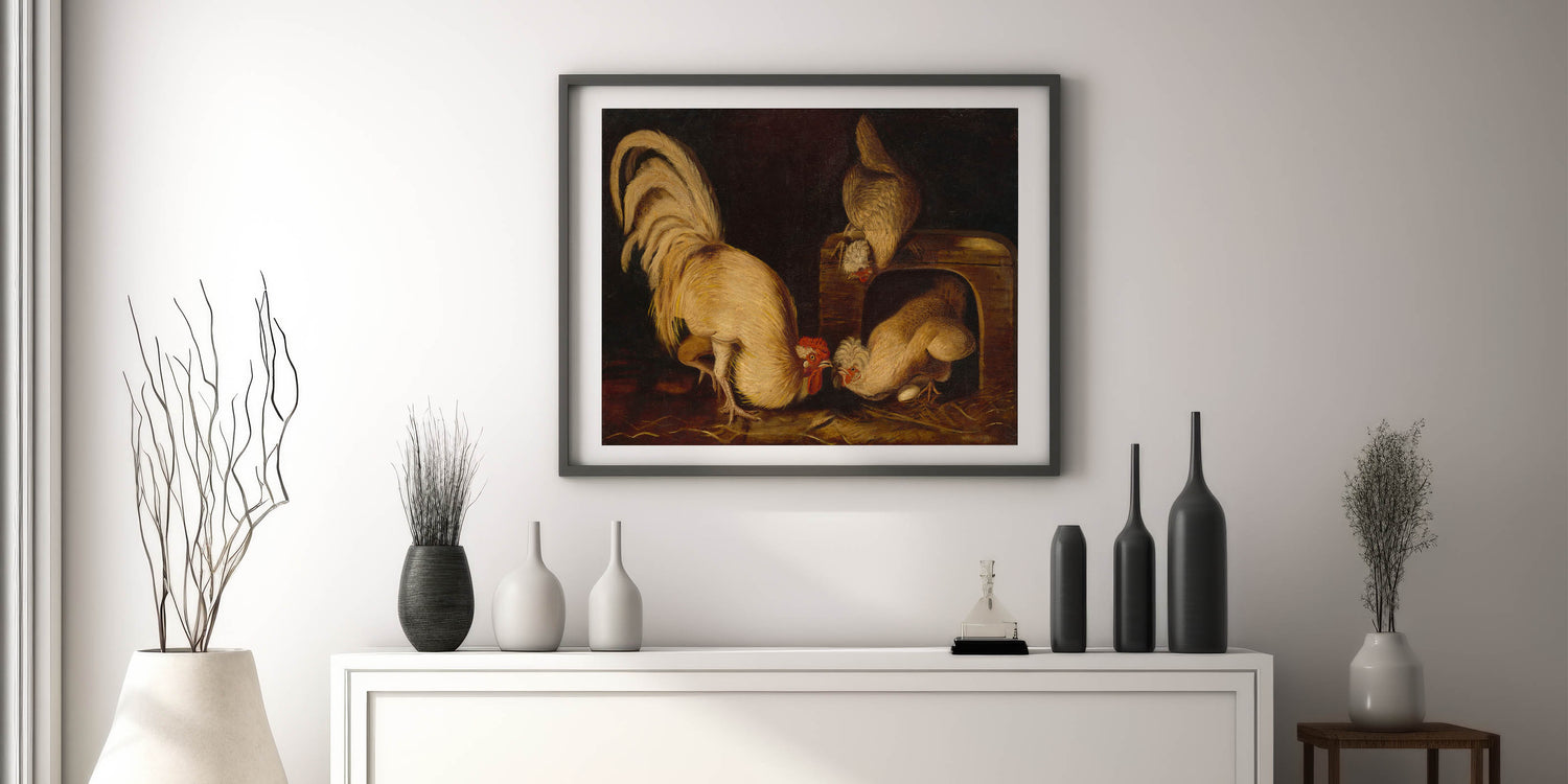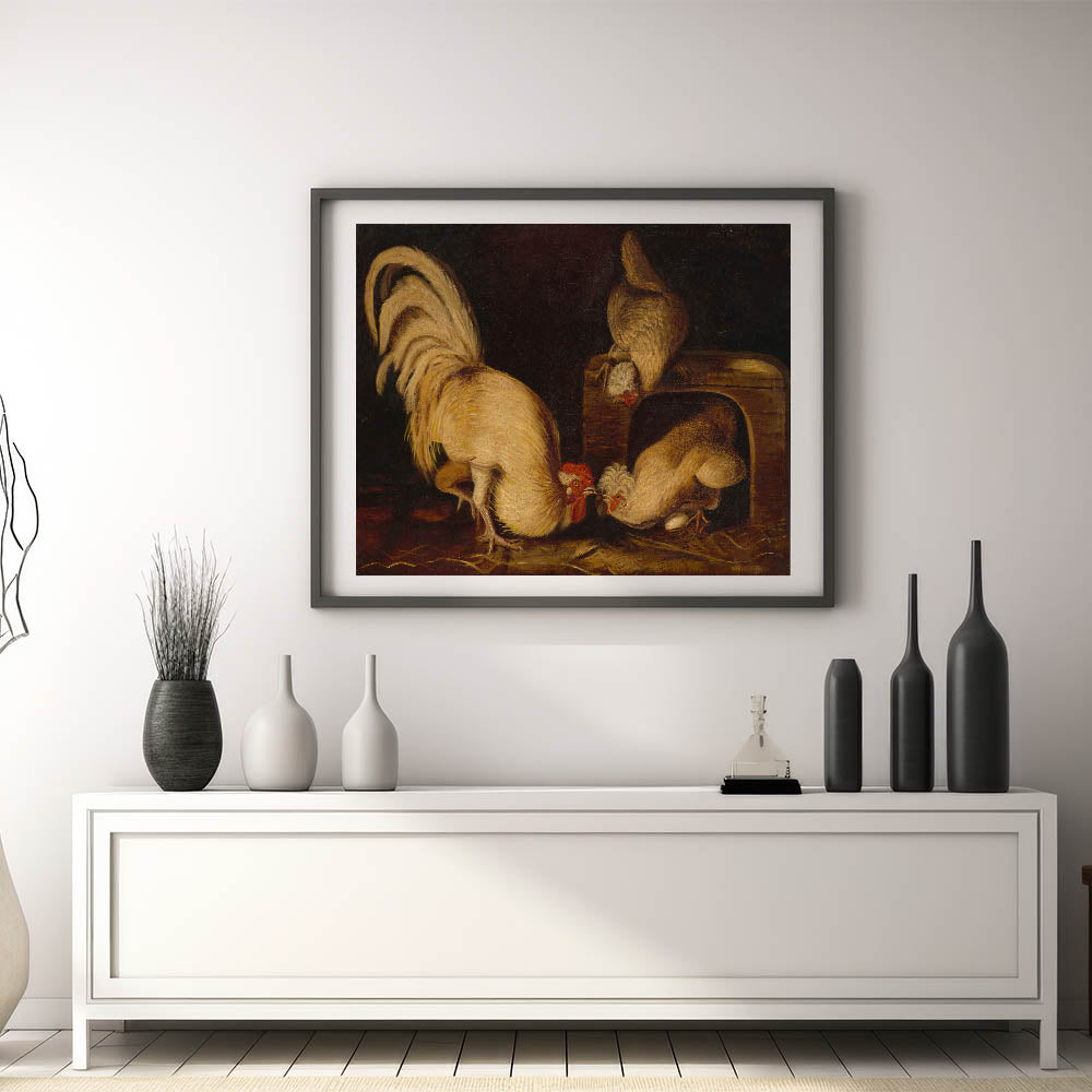 Bring the rustic charm of the countryside to your home with "Farmyard Fowls," a captivating depiction of hens and a rooster by John James Audubon. This Romanticism-inspired artwork showcases intricate detailing and rich textures, emphasizing the natural beauty of the farm setting. The earthy tones of brown, cream, and muted yellow give this piece a timeless warmth, perfect for creating a cozy atmosphere in any space.