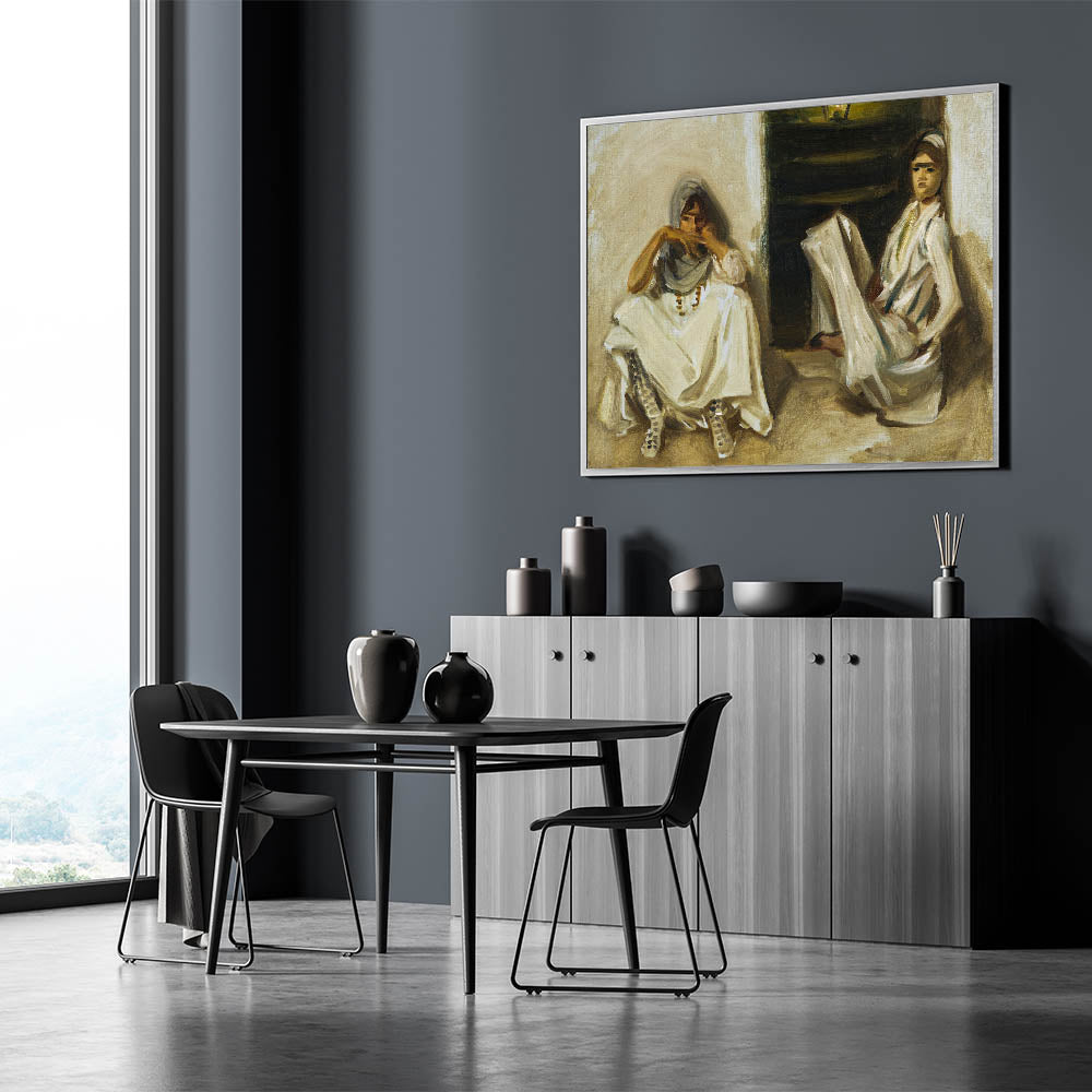 This exquisite piece, "Two Arab Women" by John Singer Sargent, captures the essence of Romanticism through its emotional depth and cultural storytelling. Rendered in soft brushstrokes, the painting depicts two women in quiet contemplation, evoking themes of introspection and resilience. Perfect for art lovers seeking meaningful pieces, this artwork adds a sense of history and elegance to any space.