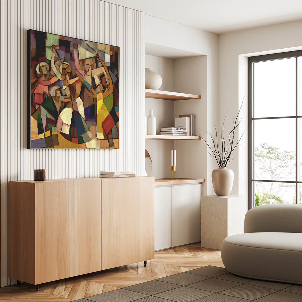 Transform any room with this vibrant figurative abstract design, ideal for living rooms, offices, or creative spaces. Its blend of color and motion brings life and energy to your walls, leaving a lasting impression on guests and art enthusiasts alike.