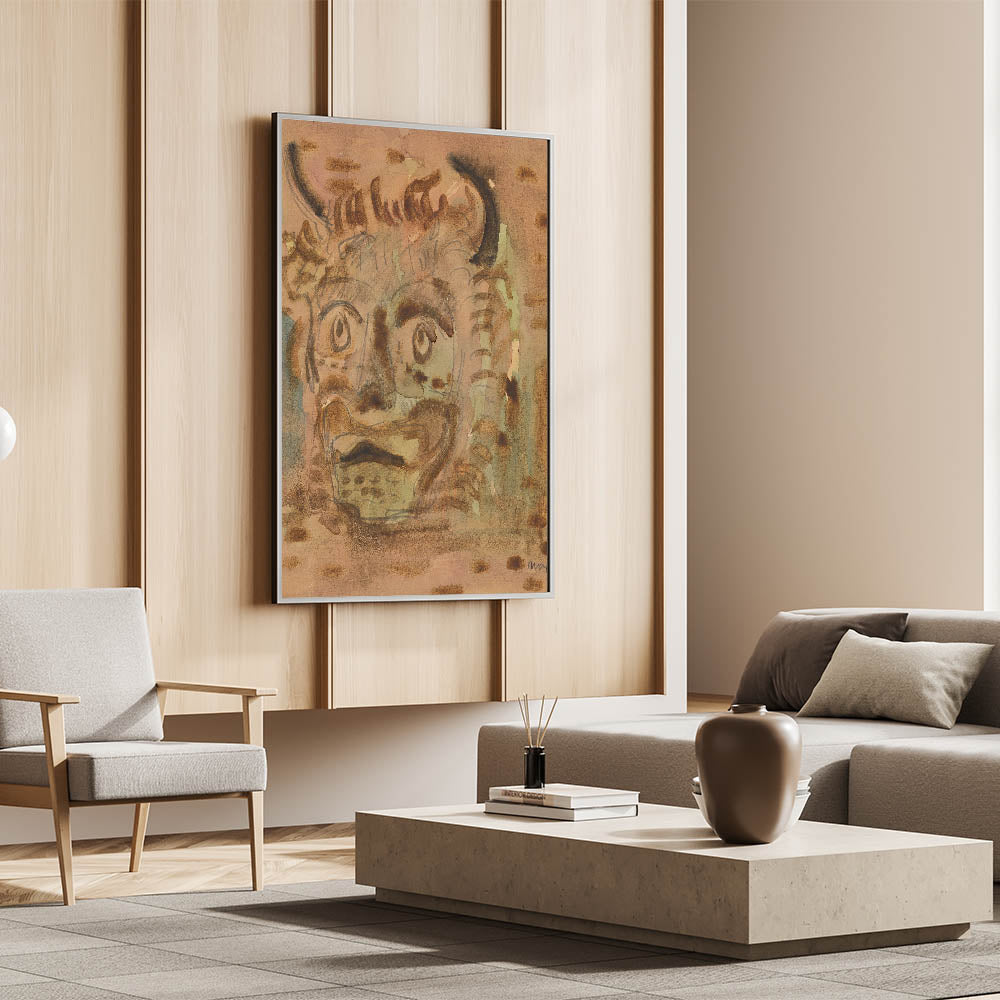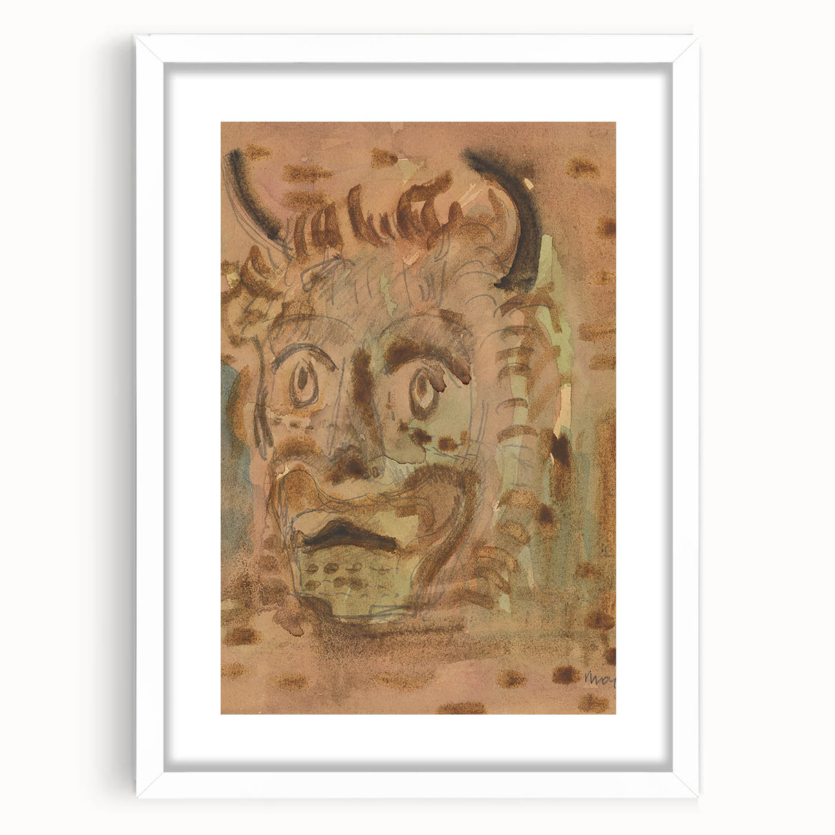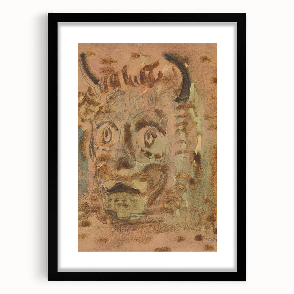 Explore the enigmatic allure of Satyr by Cyprián Majerník, a captivating Expressionist depiction of the mythical creature. Rendered with earthy tones and fluid brushstrokes, this piece evokes a sense of mystery and folklore. The satyr’s wide-eyed expression and textured features are highlighted with subtle shades of brown, green, and ochre, creating depth and emotion. Perfect for those who appreciate art that blends mythology with modernist expression, this work is a unique addition to any collection.