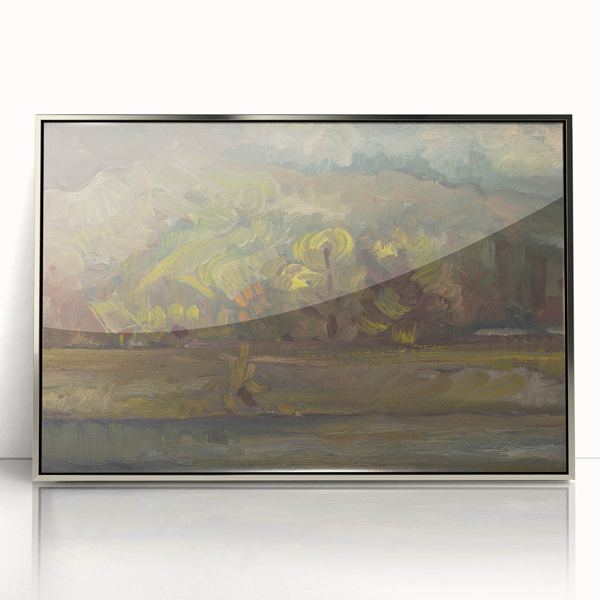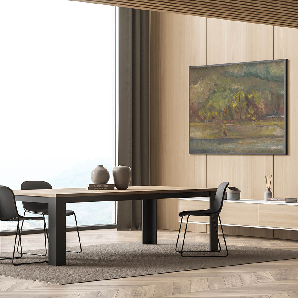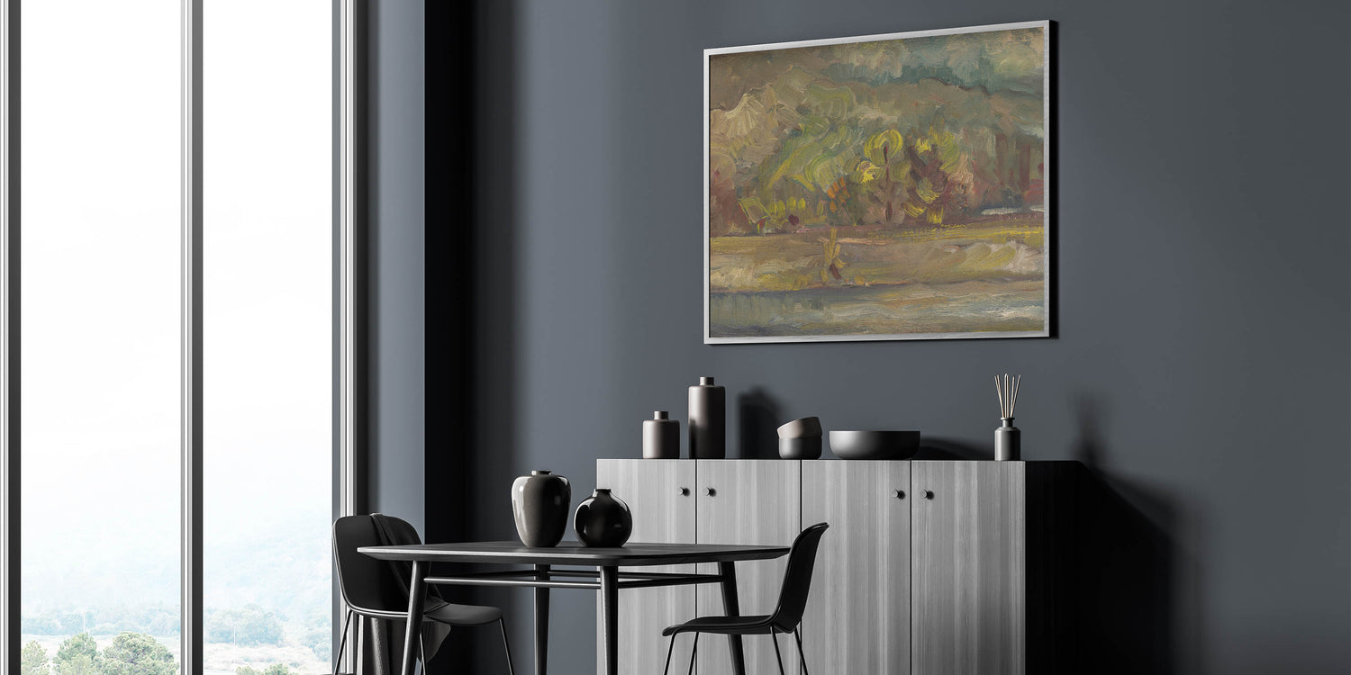 Transform your space with this mesmerizing Expressionist river landscape by Arnold Peter Weisz-Kubínčan. The painting features a dynamic interplay of earthy tones, greens, and yellows, creating a vibrant and emotive depiction of nature. The swirling brushstrokes and layered textures capture the essence of a serene yet lively riverside scene, making this artwork a perfect choice for art lovers and modern interiors.