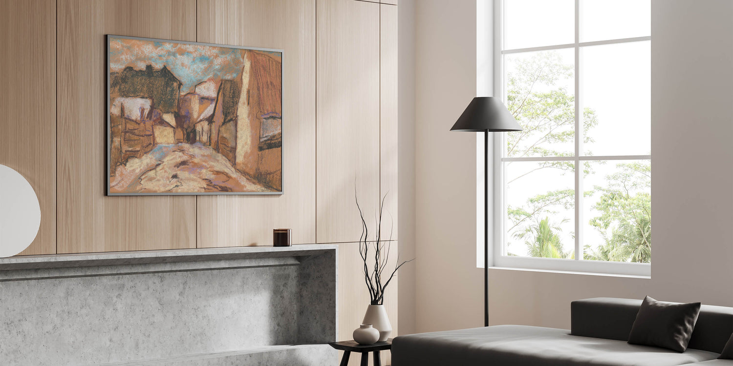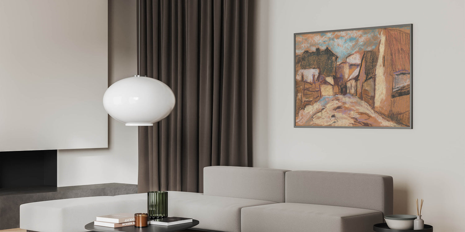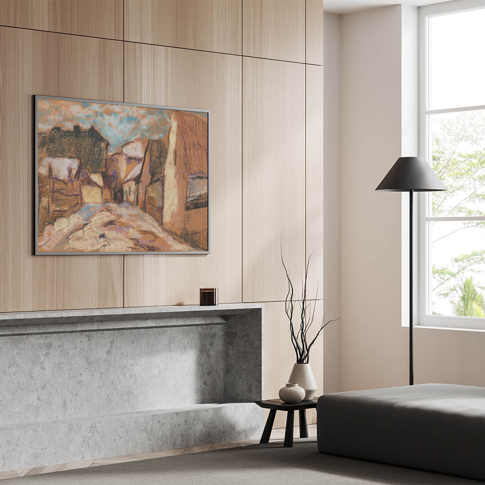 Introduce warmth and nostalgia to your space with "Rustic Alley" by Zolo Palugyay. This Expressionist artwork depicts a sunlit rural street with earthy tones and dynamic strokes that bring the scene to life. The rustic charm of weathered walls and soft pastel highlights evokes a sense of history and simplicity, making it an exceptional choice for those who appreciate the beauty of timeless village landscapes.