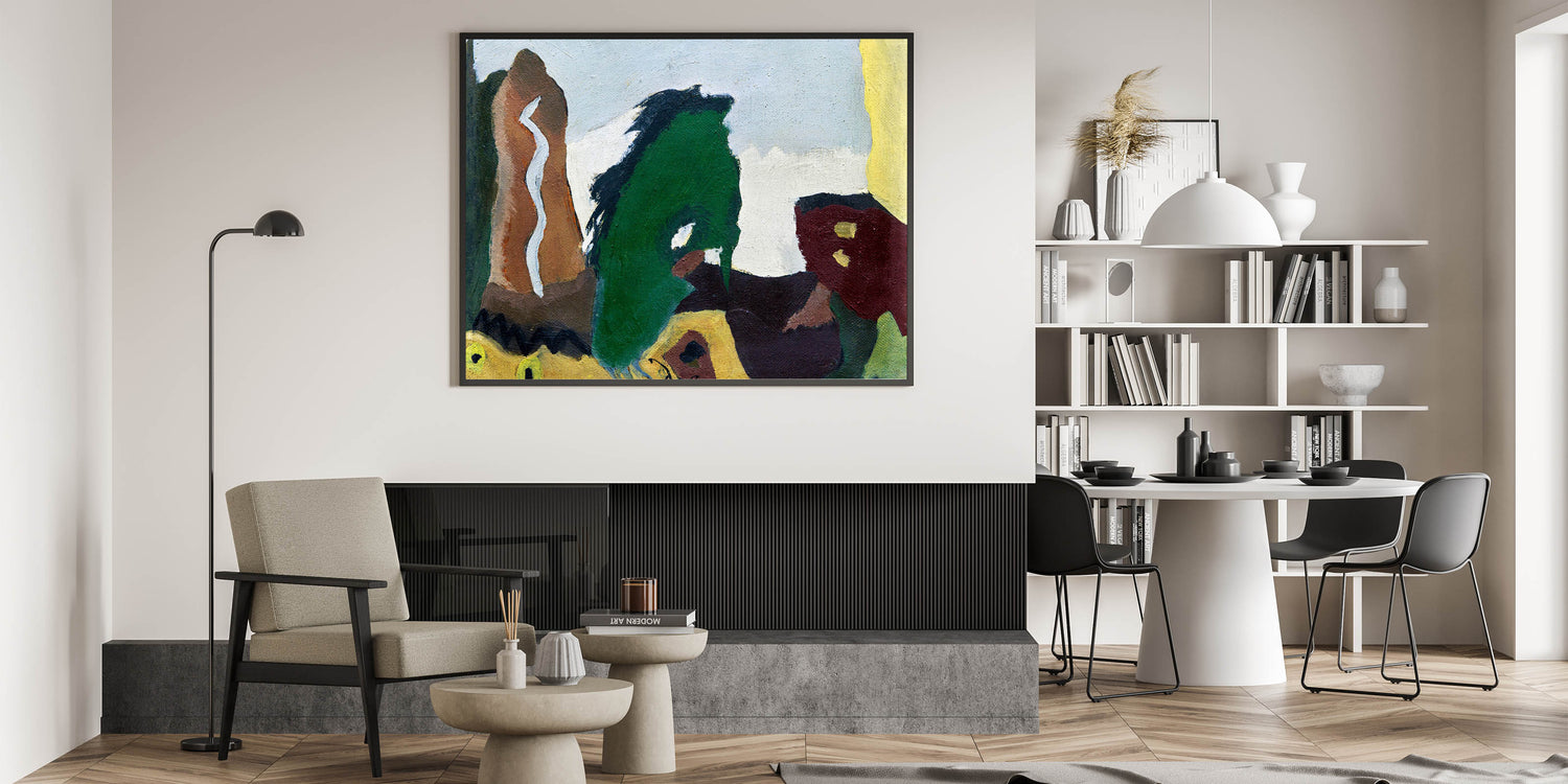 Embrace the abstract beauty of nature with "Foot of Lake," a distinctive piece of modern wall art by Arthur Dove. This contemporary artwork features bold shapes and earthy tones, capturing the essence of a natural landscape with minimalistic abstraction. Perfect for trendy home decor, it brings a touch of sophistication and creativity to any space.