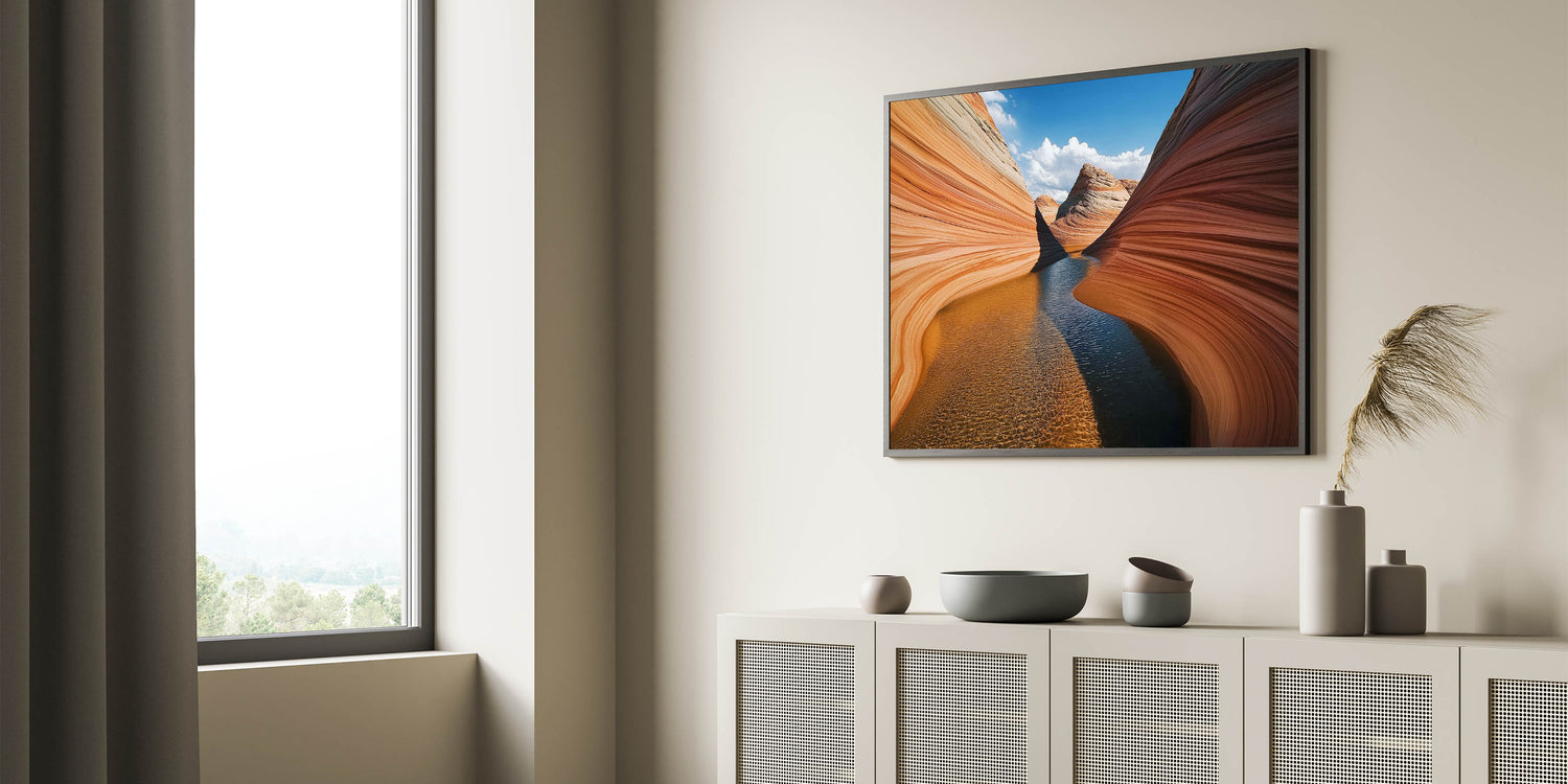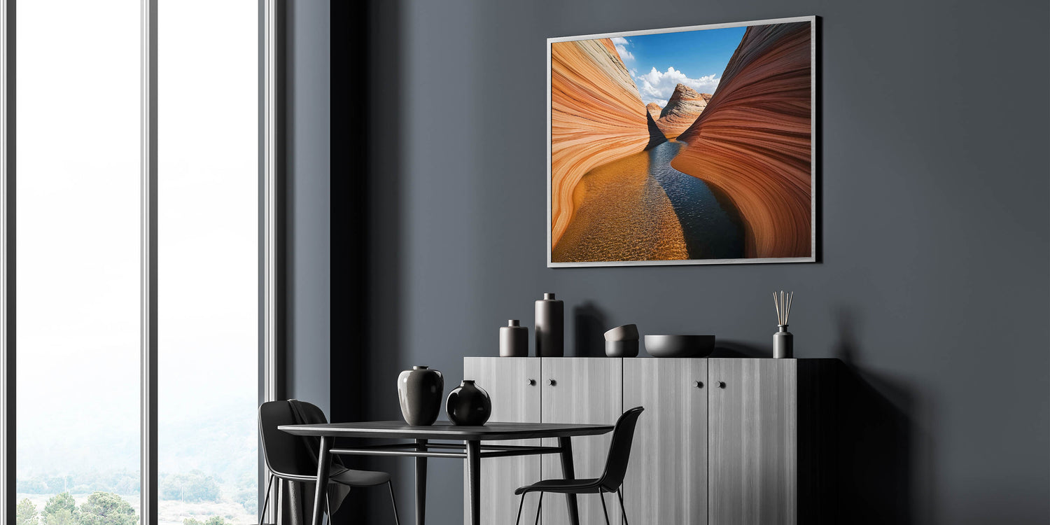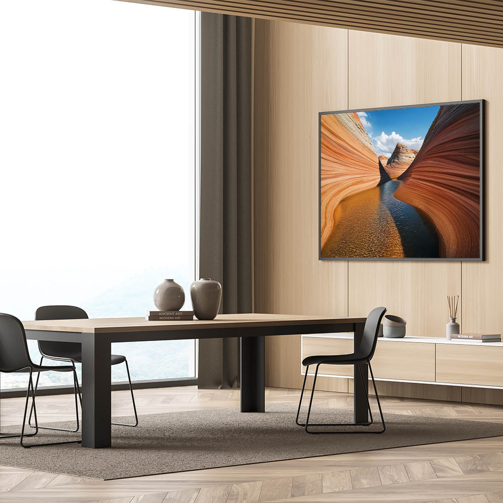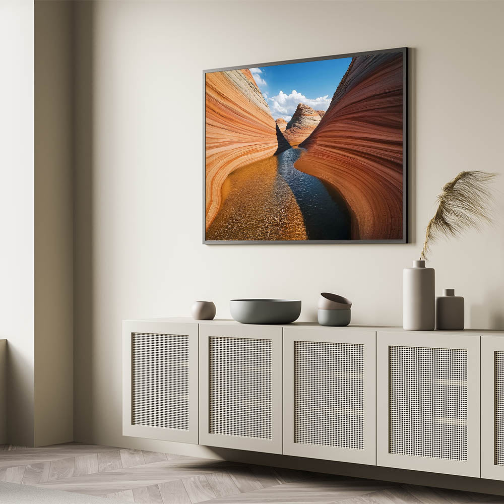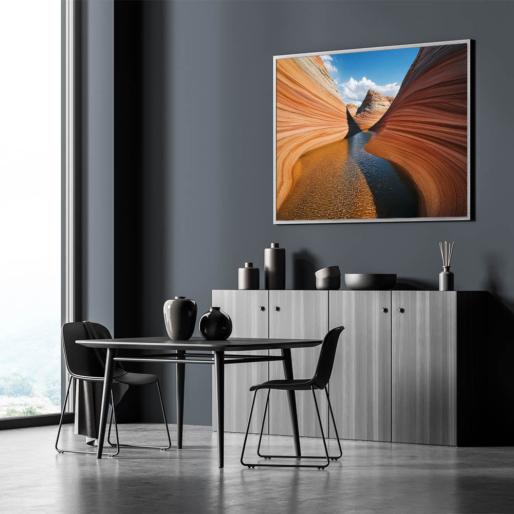 Elevate your decor with the timeless beauty of this sandstone canyon artwork. Whether displayed in a living room, bedroom, or workspace, it adds warmth and elegance to your surroundings. Perfect for nature enthusiasts and art lovers, this piece will inspire tranquility and awe. Explore our collection today and bring the beauty of the canyon indoors.