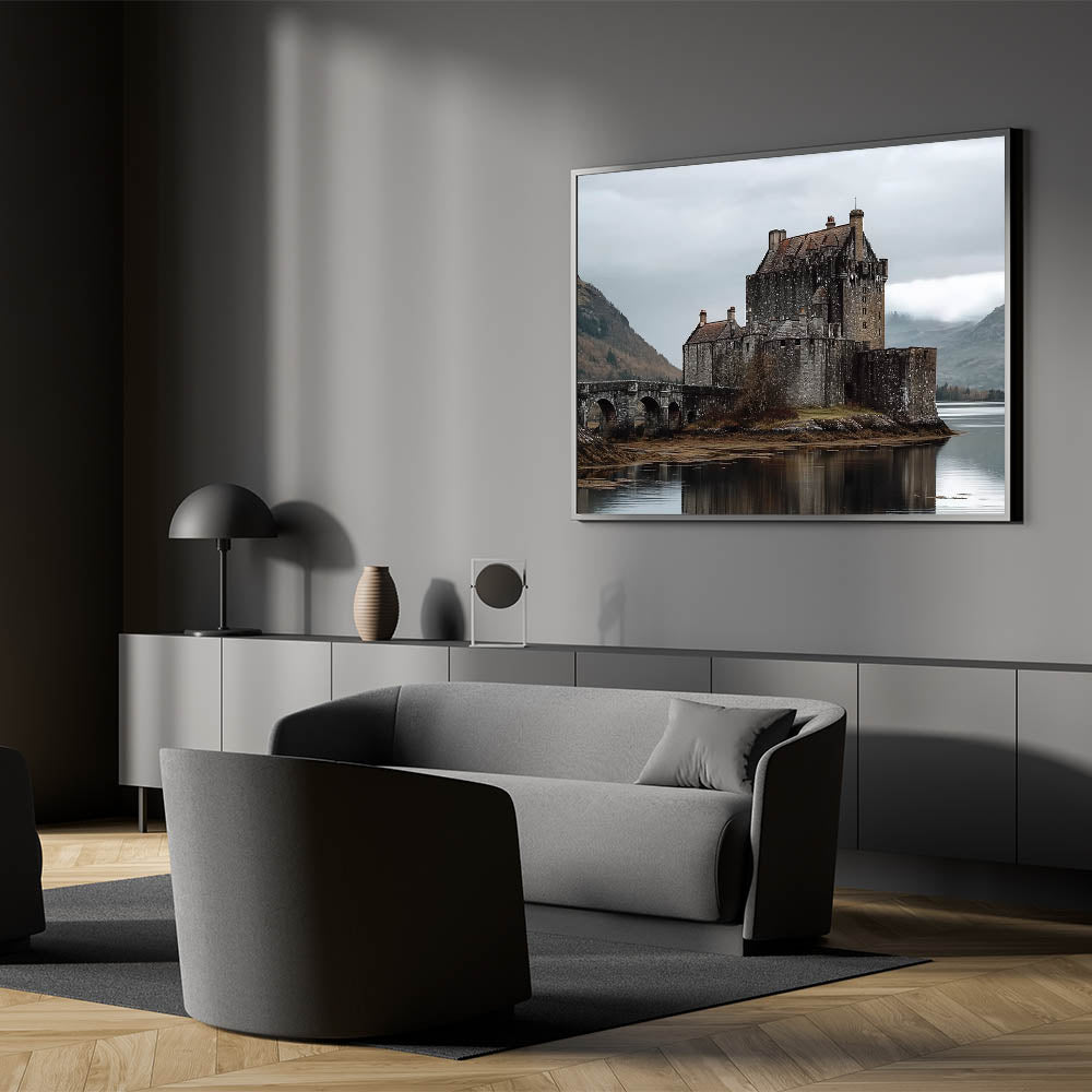 Transform your living room, office, or bedroom with this unique castle artwork. Ideal for history enthusiasts and nature lovers alike, this piece combines the majesty of medieval architecture with the peace of a serene landscape. Make this timeless castle art the highlight of your decor today!