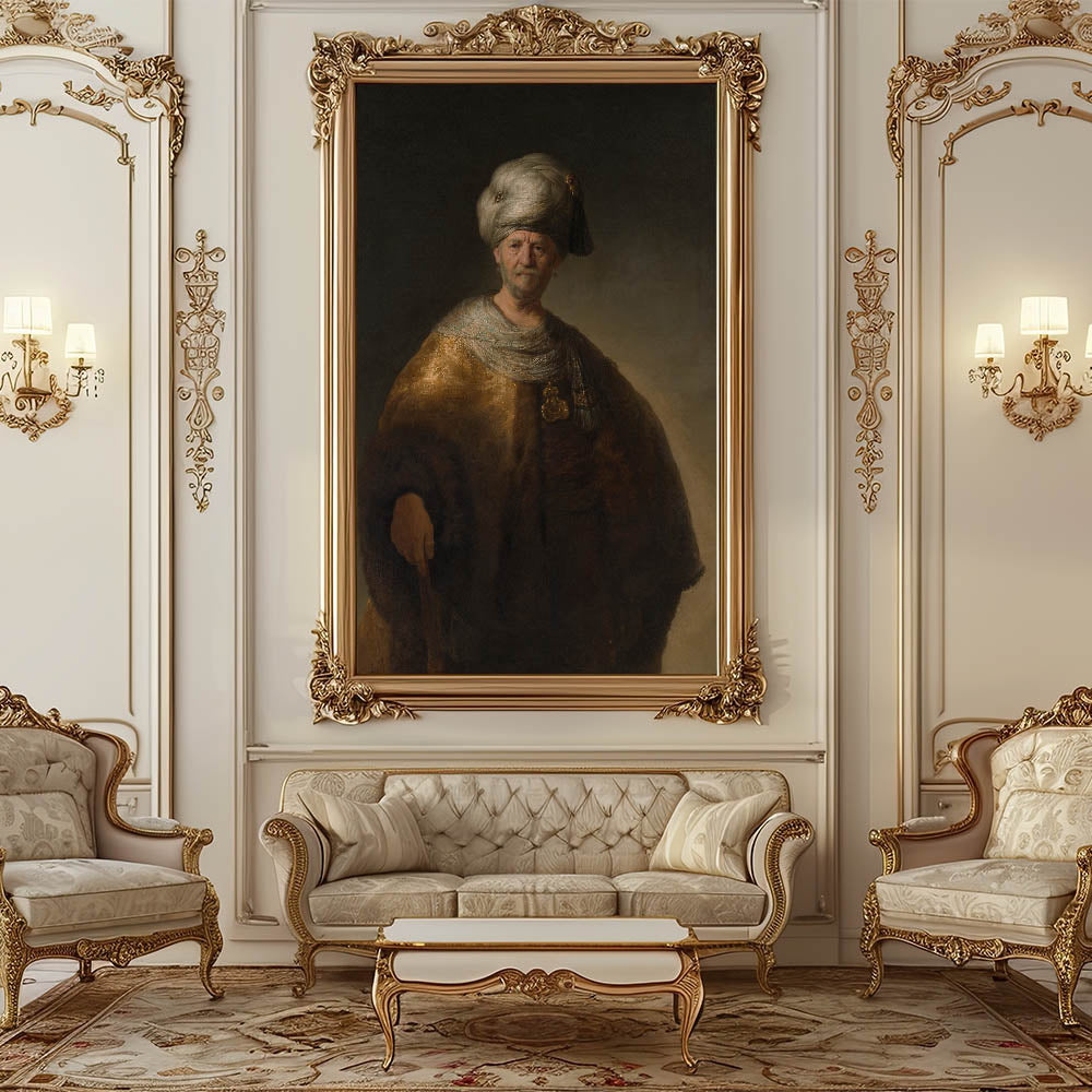 Introduce a touch of elegance and historical charm to your home decor with this captivating Baroque Art Print. Featuring a distinguished gentleman in a turban, this exquisite piece reflects the intricate and artistic elegance of the Baroque era. The artwork captures the essence of detailed Baroque designs, providing timeless artistic expression for your interiors.