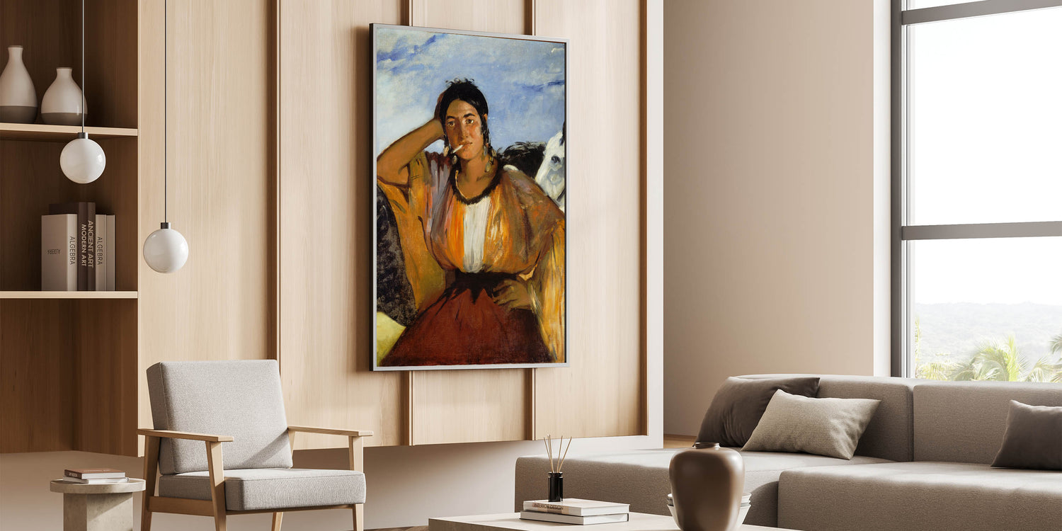 Add a touch of timeless artistry to your home with this striking Impressionist wall art. This artwork, inspired by the works of famous Impressionist artists, captures the essence of 19th-century European art with its bold colors and expressive brushstrokes. The intriguing portrait of a woman with deep, soulful eyes invites viewers to pause and appreciate the beauty and emotion conveyed through Impressionism. Perfect for art enthusiasts looking to incorporate classic French Impressionist art into modern spaces, this piece will add warmth and character to any room.