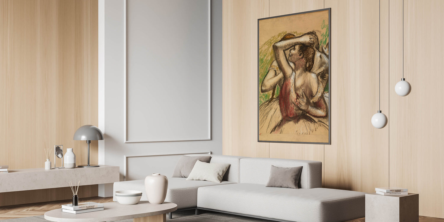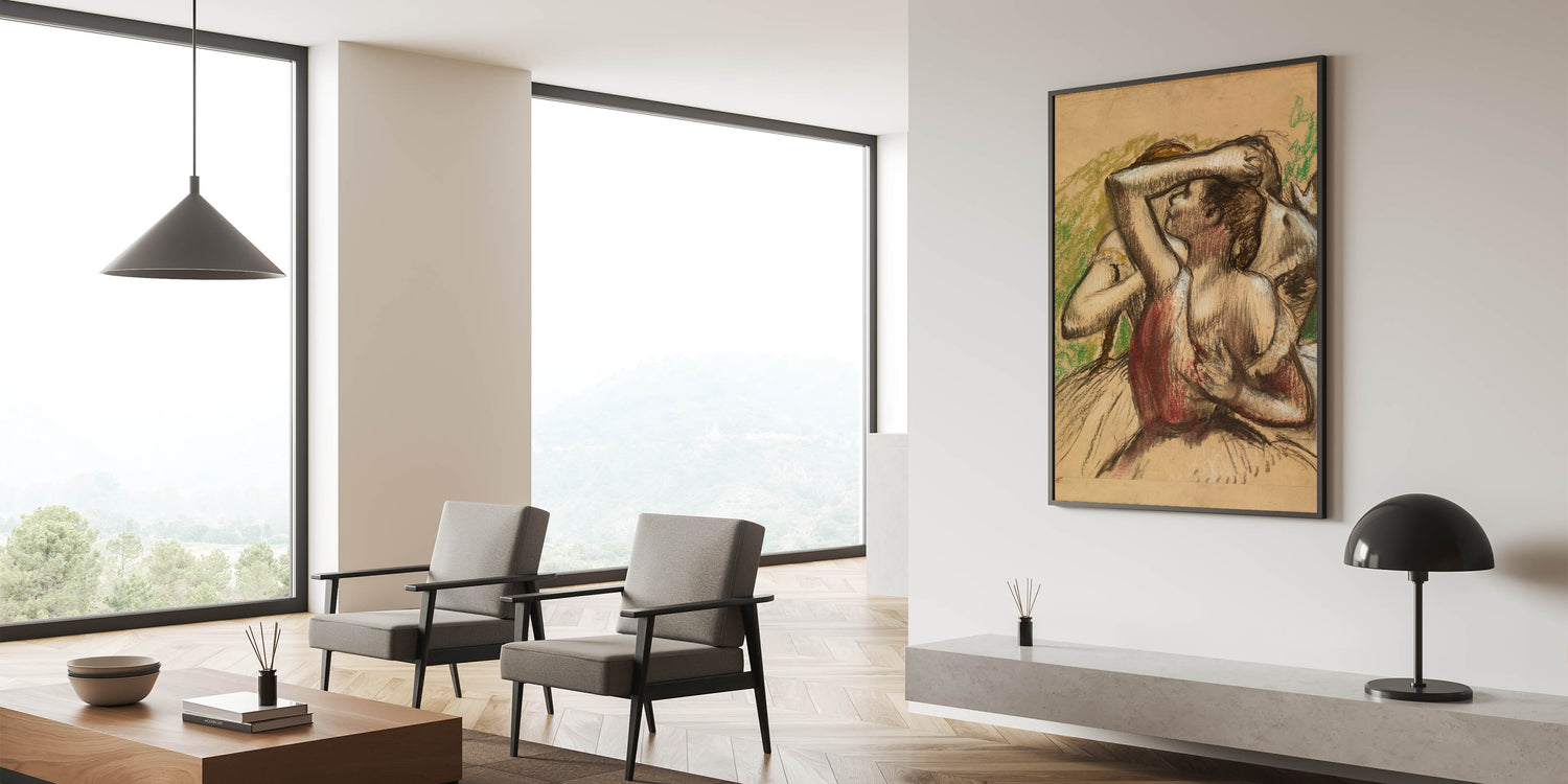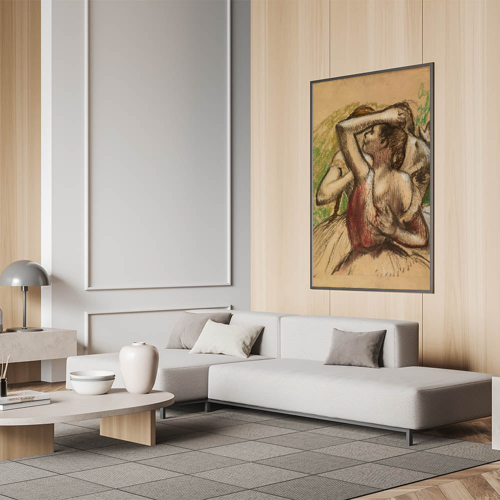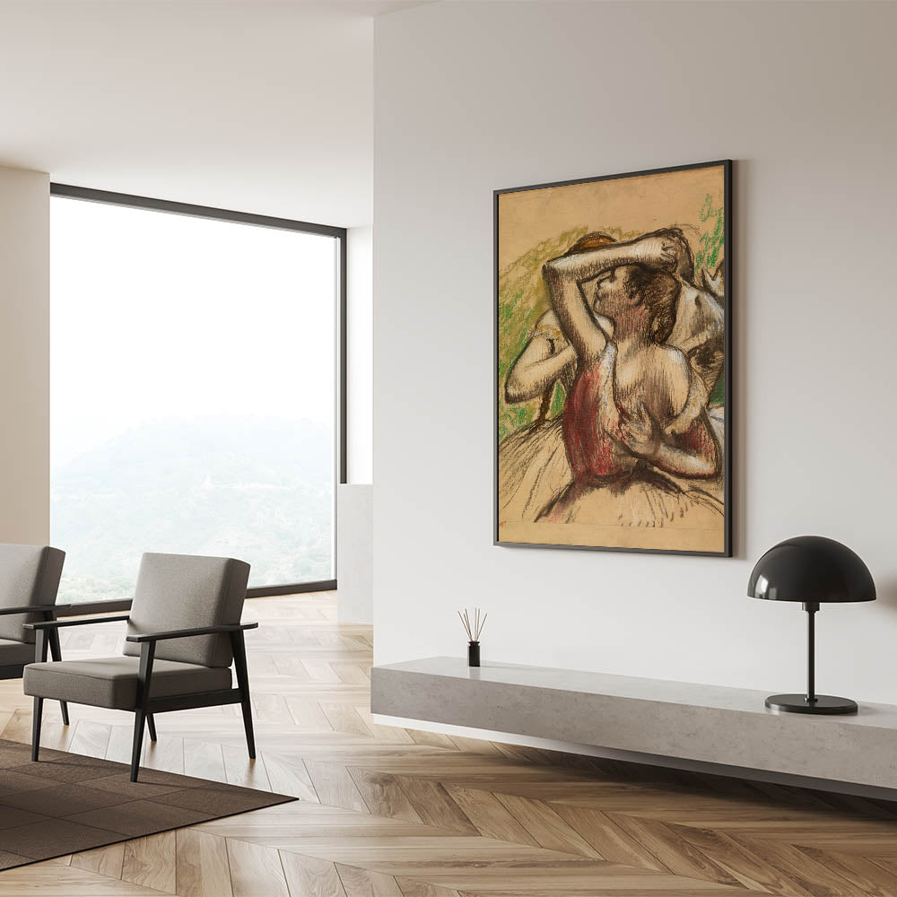 Bring the grace and elegance of ballet into your home with "Group of Dancers" by Edgar Degas. This Impressionist artwork beautifully captures the intimate, delicate moment of dancers preparing for their performance. Degas' masterful use of pastels creates soft, textured strokes, bringing depth and realism to the figures. The warm tones and dynamic lines of the dancers' forms make this piece a perfect addition for art lovers and fans of Impressionist style decor.