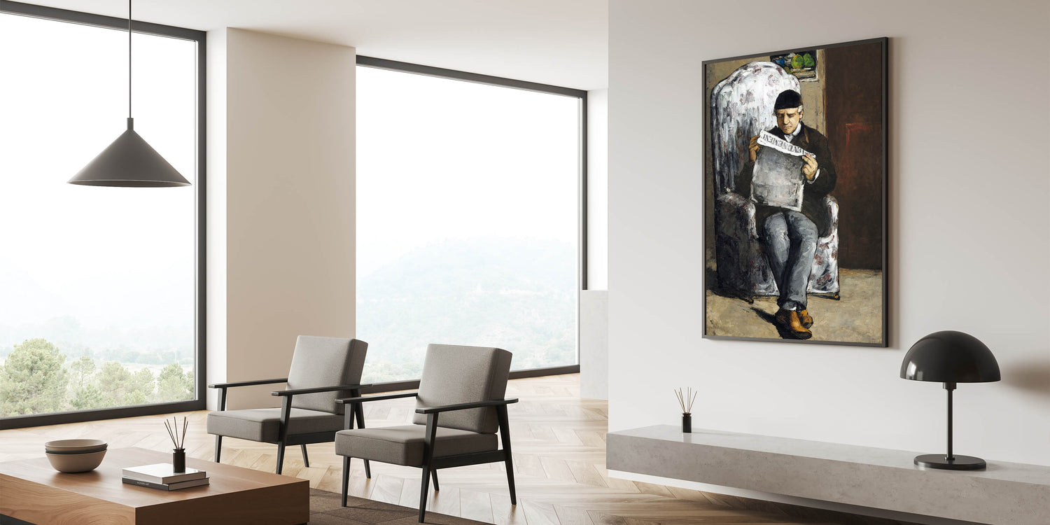 Add a touch of history and artistic depth to your space with Paul Cézanne's "The Artist's Father, Reading L'Événement." This powerful portrait showcases Cézanne's unique Impressionist style, combining expressive brushstrokes with a muted color palette. The painting captures an intimate moment as Cézanne's father reads a newspaper, bringing a sense of stillness and introspection to the scene. Perfect for art enthusiasts, this piece is an iconic representation of Cézanne's early works and his exploration of human connection.