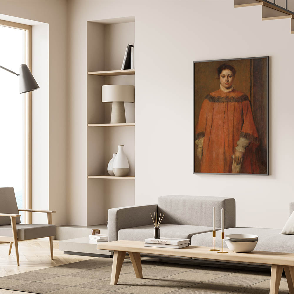 Enhance your decor with the grace and elegance of Degas’s Girl in Red, ideal for creating a sophisticated, contemplative atmosphere in any room.